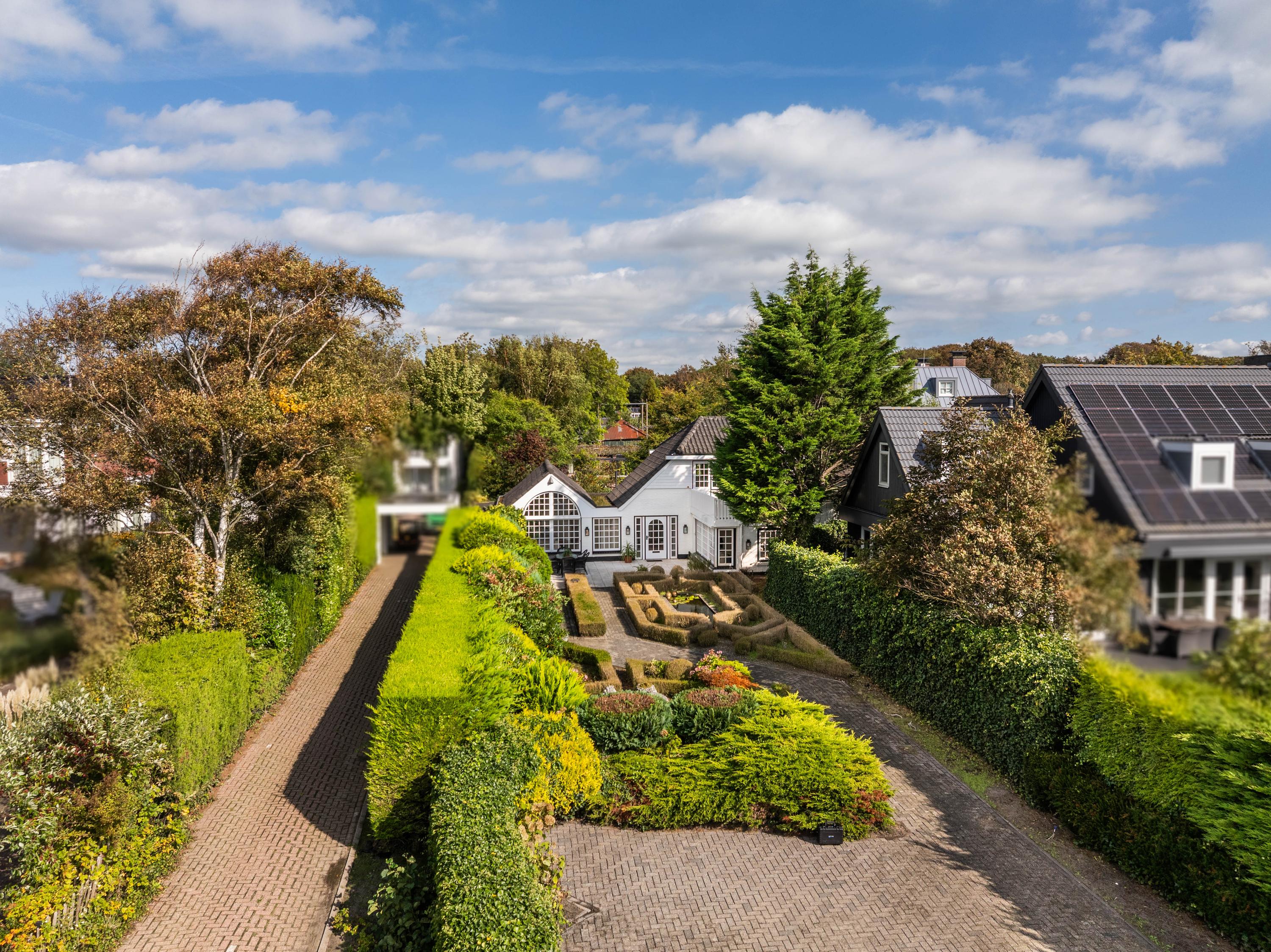 Because the house is at the very back of the plot, the front garden is very generous and offers a surprising amount of privacy. We find a lovely terrace facing south / west, so in the summer months until late in the sun and the sunset can be enjoyed. In front of the plot is parking for several cars and the whole is closed with a gate.