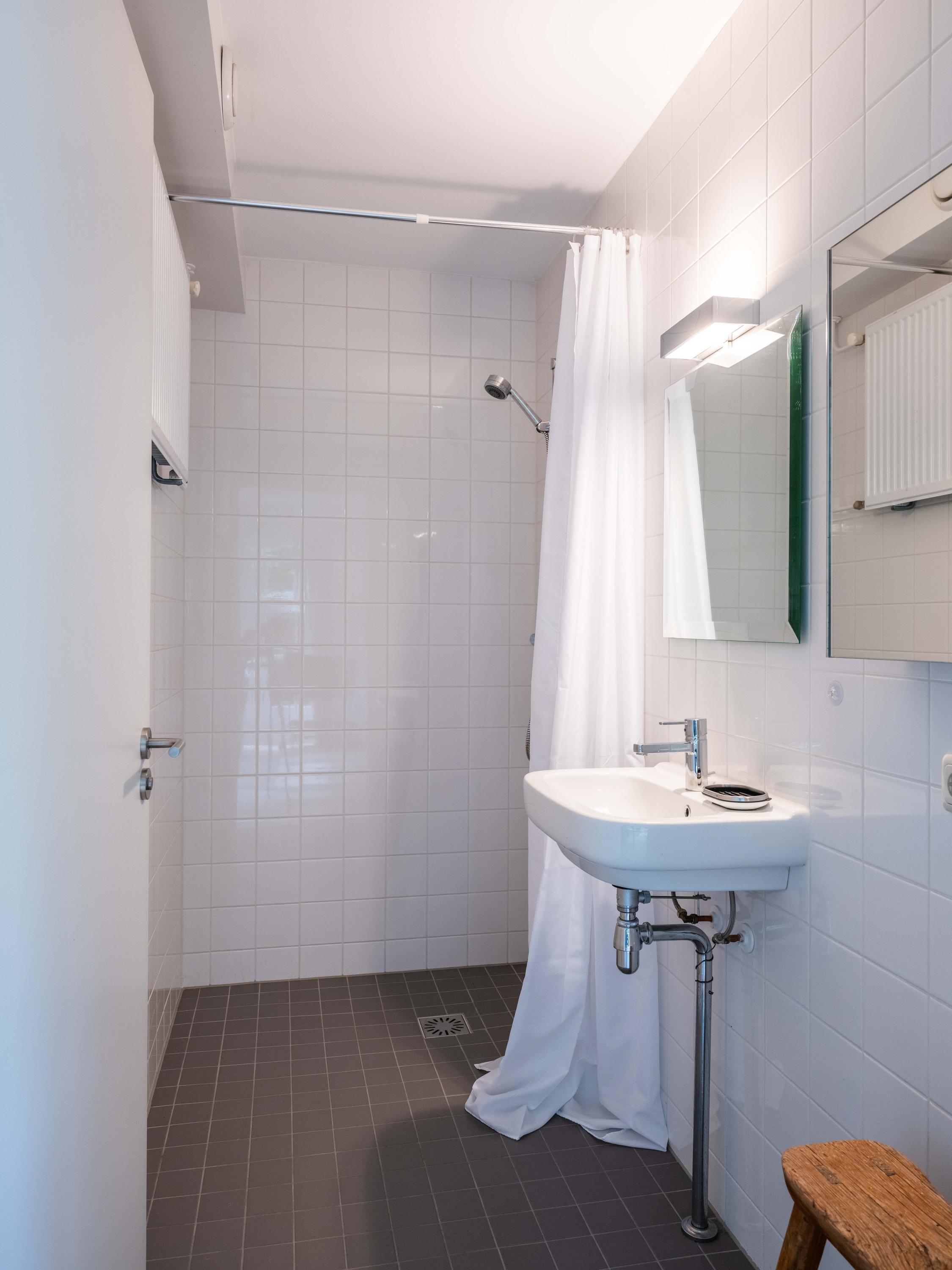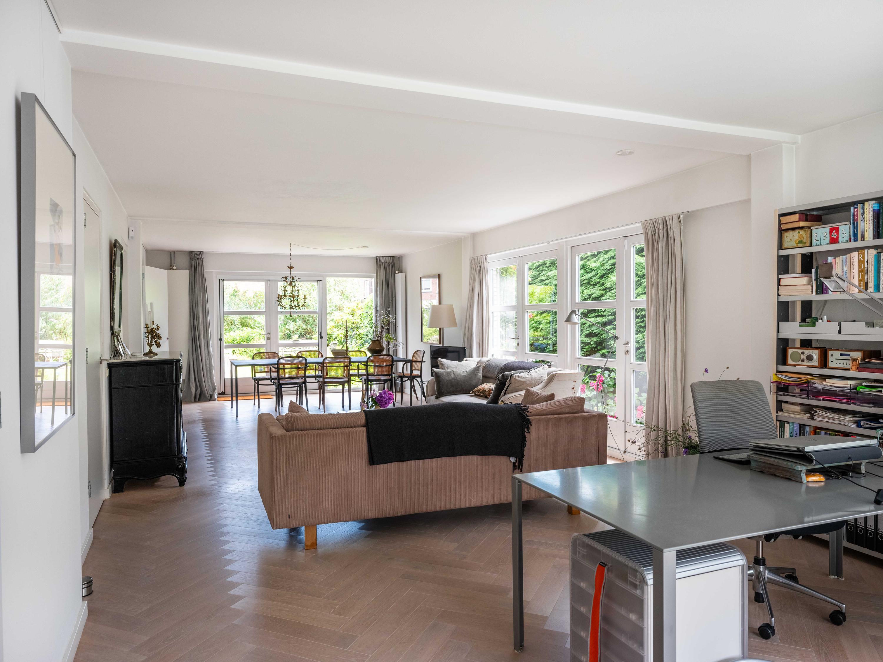 Entering through a well-proportioned hall, the rhythm of oak flooring and generous light define the expansive living area. French doors connect to a thoughtfully landscaped garden, offering multiple terraces and a sense of calm, while a dedicated work or hobby room extends the sense of purpose. The Bulthaup kitchen is appointed with an Atag oven, 5-burner stove, dishwasher and refrigerator. A former garage, now a large storage room with utility connections, enhances the sense of practical elegance.