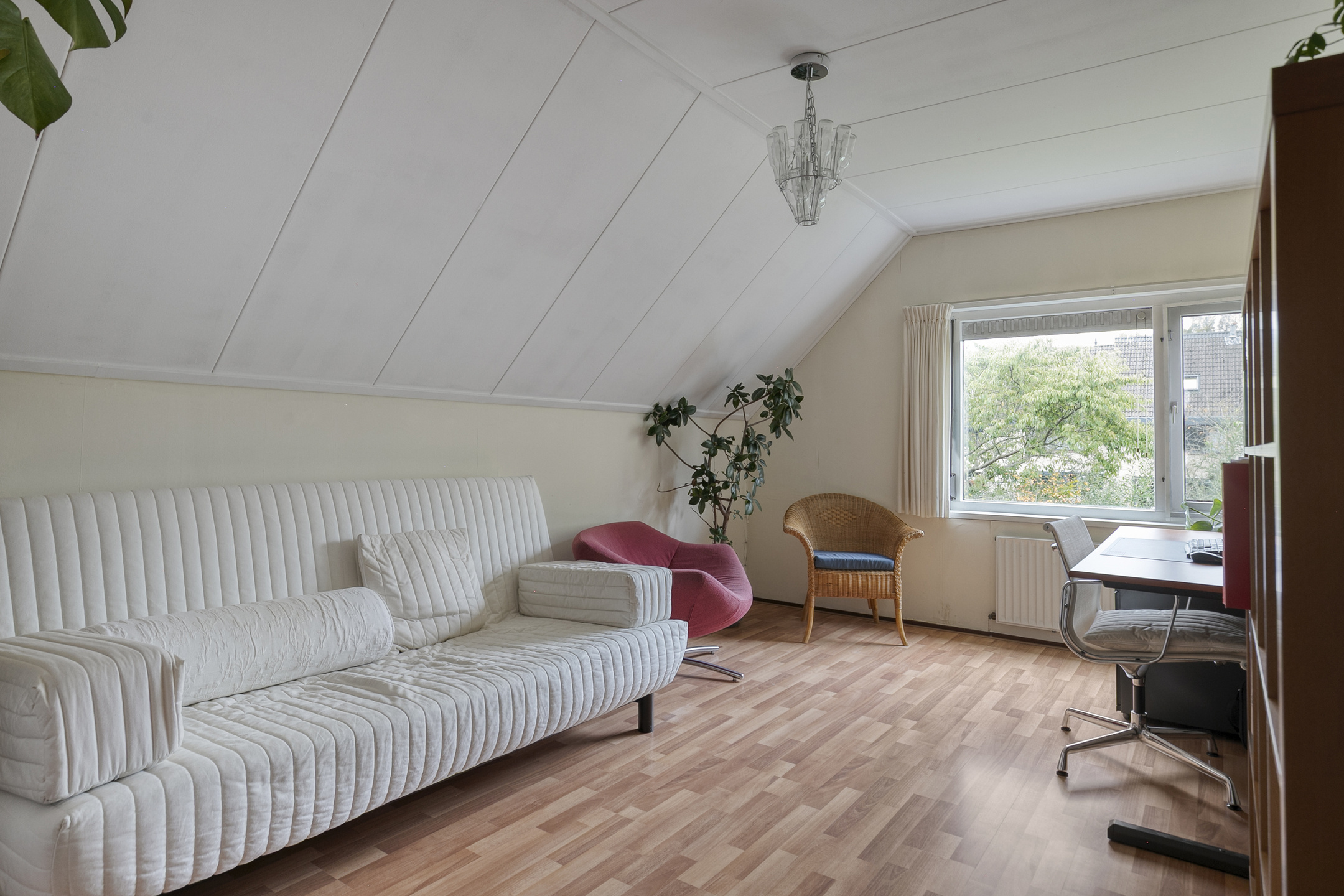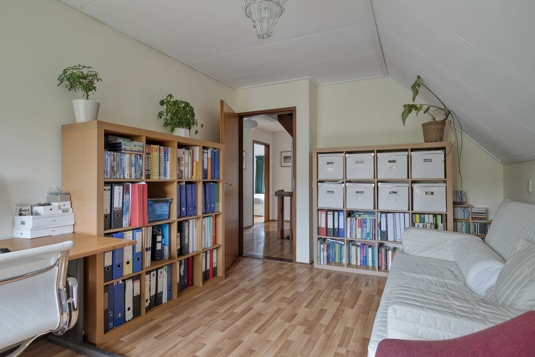 The attic is surprisingly spacious, offering ample storage and housing the central heating unit.