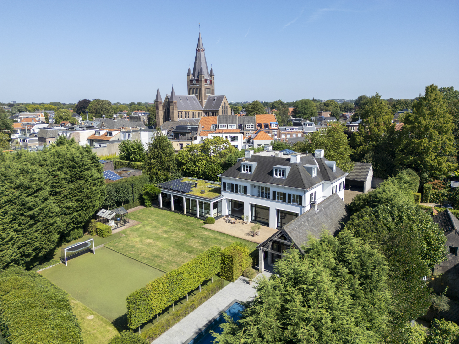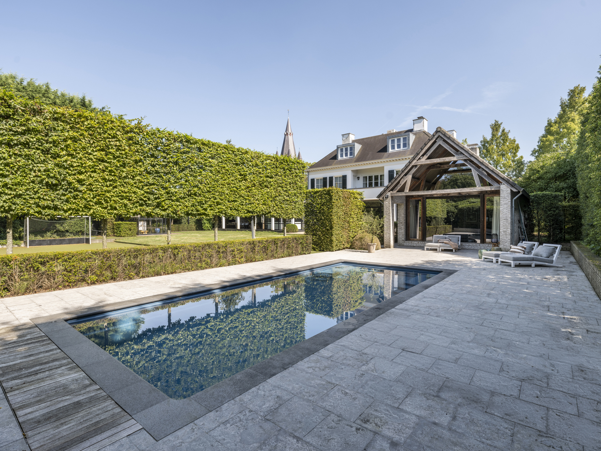 Villa Breda sits discreetly within walking distance of Ginnekenmarkt, the Mastbos, and Markdal, embodying understated grandeur through a fusion of classical and modern architecture. This 850 m² villa for sale in Breda, constructed in 2011, is nestled behind gates in a private courtyard, shaded by plane trees, where a carriage house accommodates four cars and a wooden shed completes the arrival sequence. On a 3,188 m² secured plot, the home offers an atmosphere of cultivated seclusion, heightened by a lush garden, a private swimming pool, and a synthetic grass hockey field, seamlessly blending outdoor leisure with elegant living.
