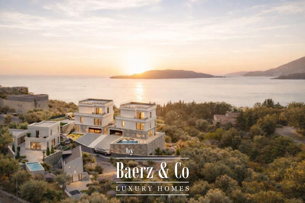 Modern villa Budva offers a refined blend of privacy and coastal luxury, set just 5.5 km from the center of Budva. This thoughtfully designed villa provides 300 m² of living space on a 150 m² plot. Surrounded by natural greenery, it is only 350 meters from the Adriatic Sea, capturing expansive views of the mountains and water.