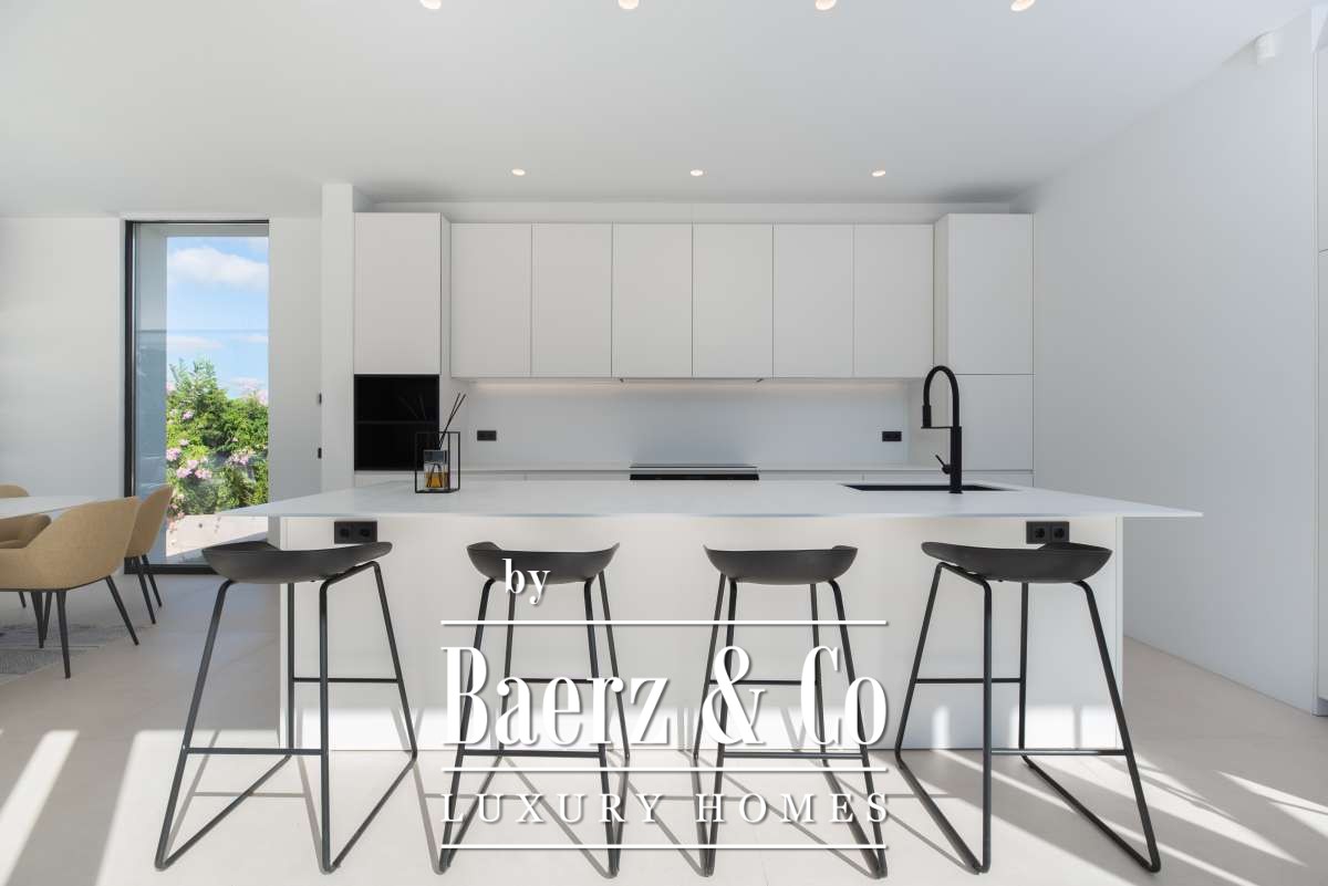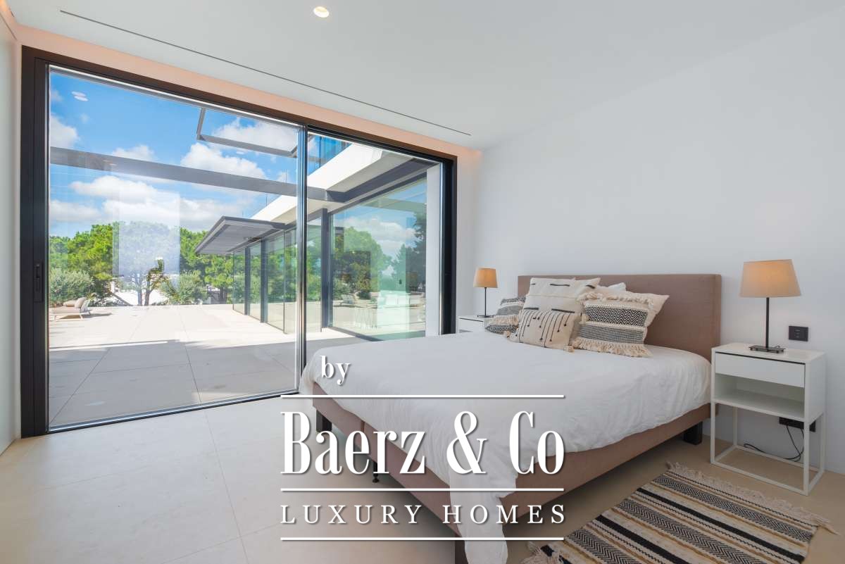 Minimalist villa Can Bessó presents a compelling blend of discreet luxury and refined architectural clarity on the outskirts of Ibiza Town. This newly built residence occupies 600 m² of living space set on a 2,240 m² plot, offering four bedrooms and four bathrooms over two levels. The design anchors itself in minimalism, with white and black contrasts and expansive glass, drawing Mediterranean light into each room. The open-plan living area extends onto generous terraces, framing views of the private garden and surrounding countryside for a seamless indoor-outdoor rhythm.