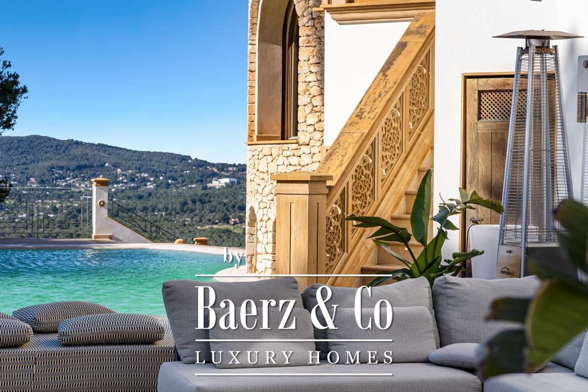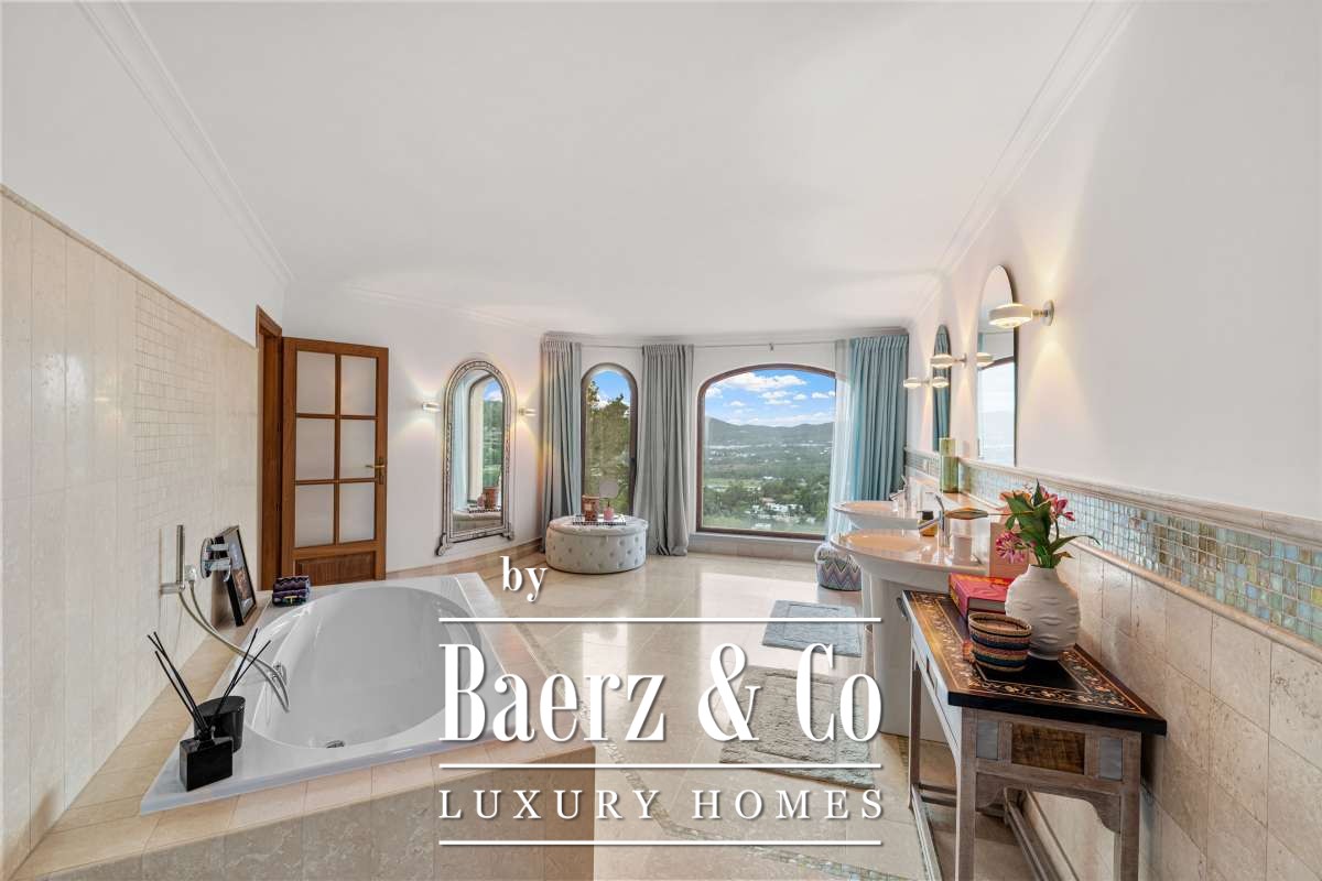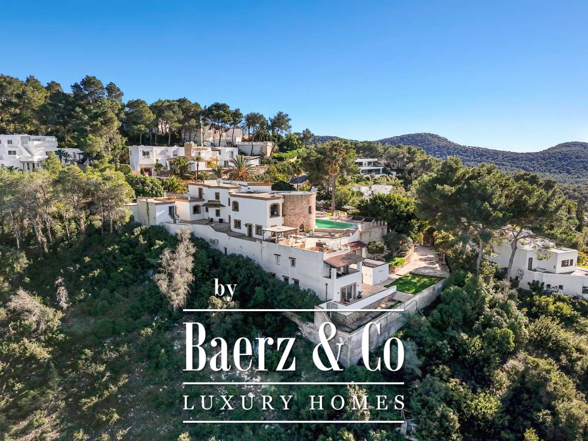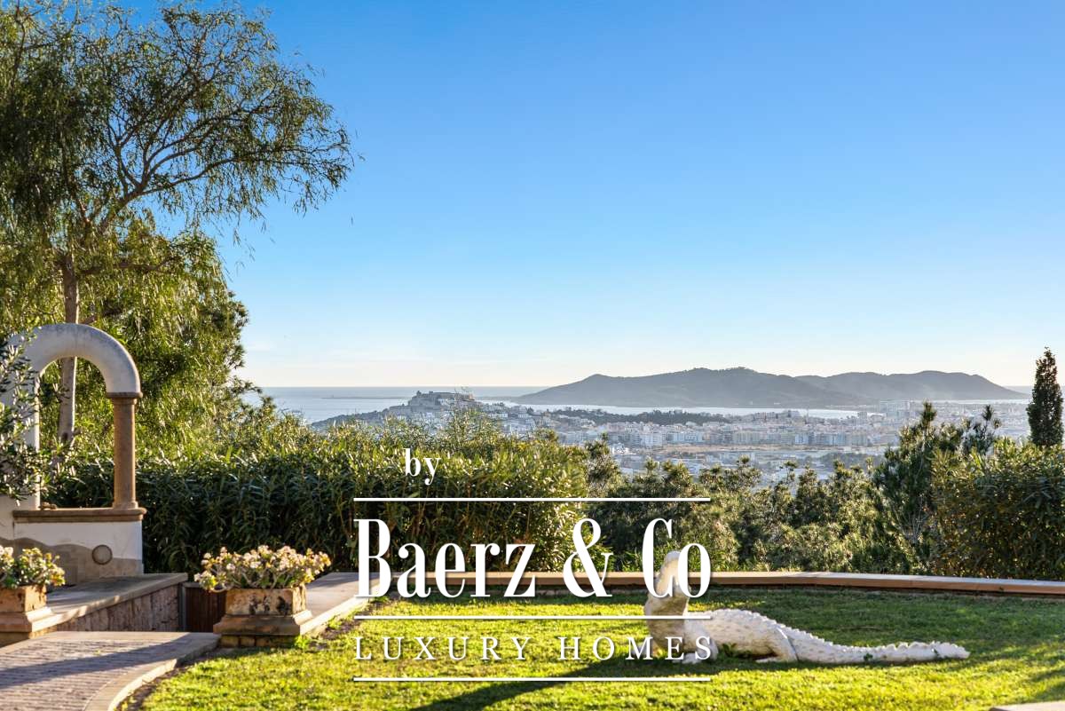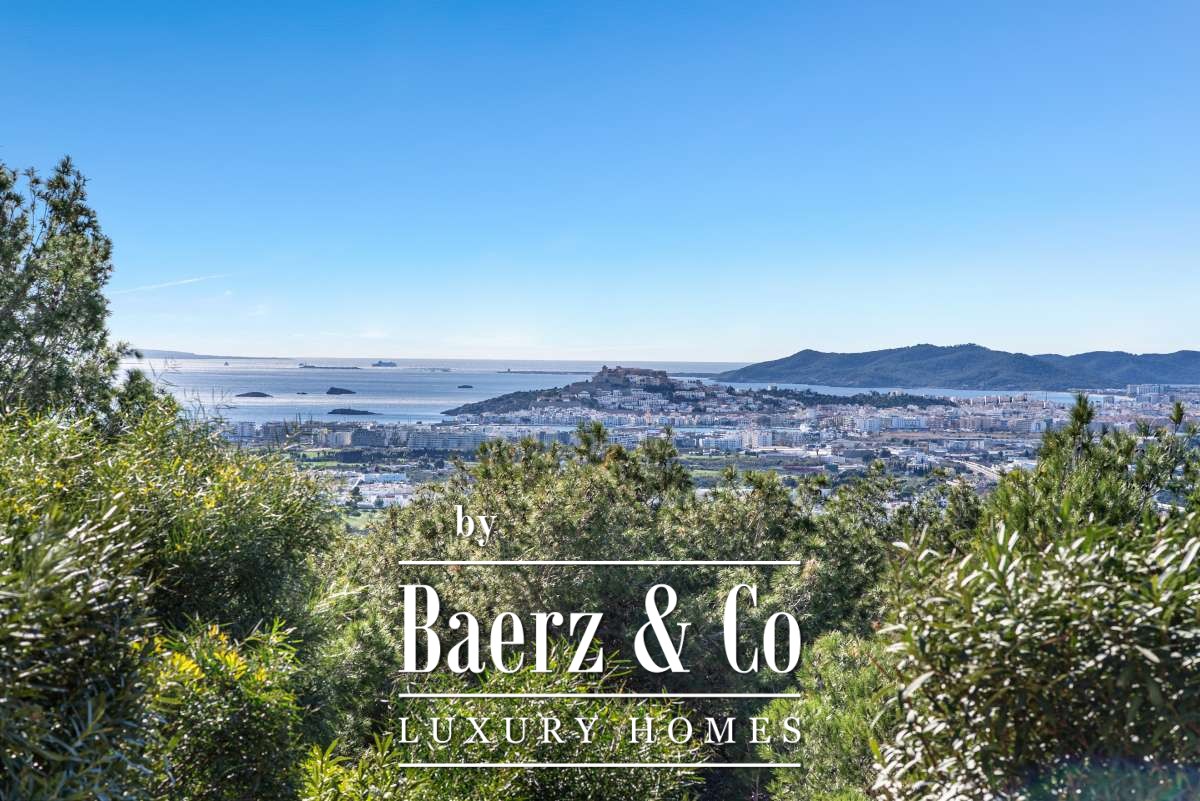Villa Can Furnet with Panoramic Sea and City Views commands a privileged position within one of Ibiza’s most discreet and guarded residential enclaves. This villa articulates a rare sense of privacy, space and calm, yet Ibiza Town and Marina Botafoch remain within a ten-minute drive. The villa offers 992 m² of interior living over a 2,504 m² plot, with eight bedrooms and nine bathrooms, including two separate guest apartments with private entrances, thoughtfully designed for guests or staff who value privacy.