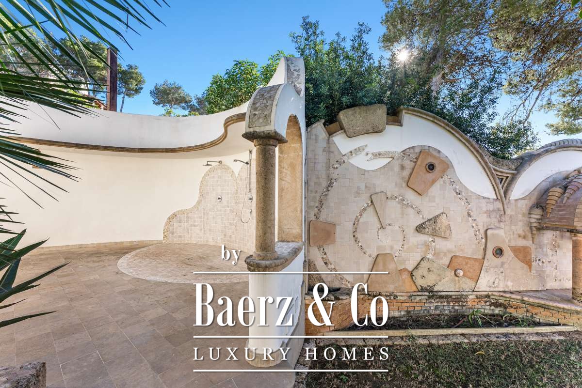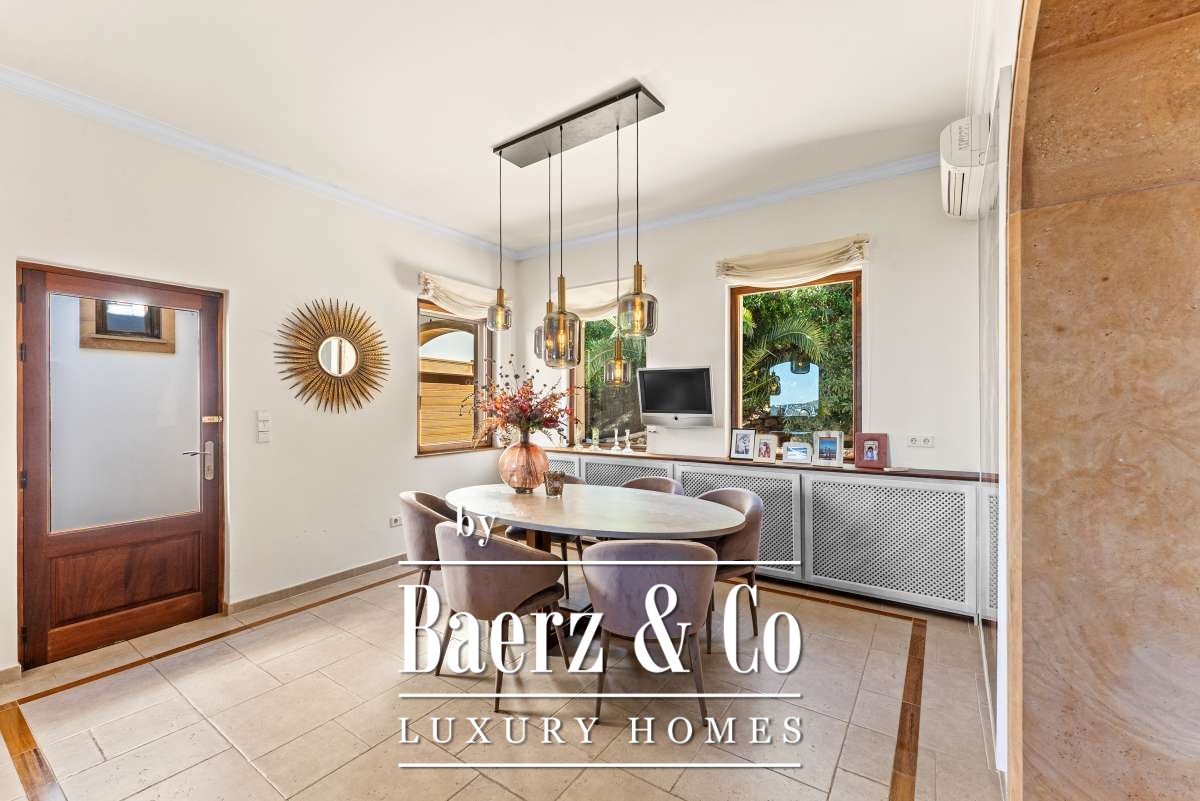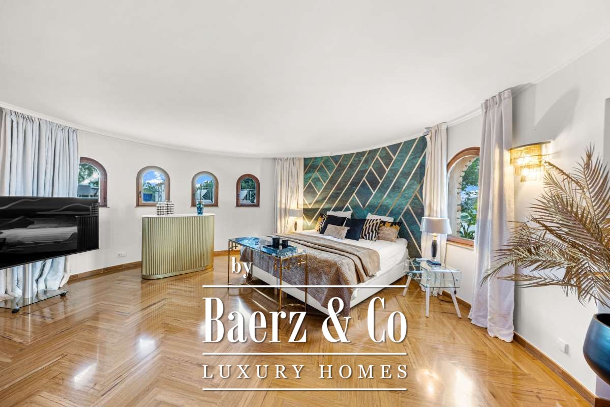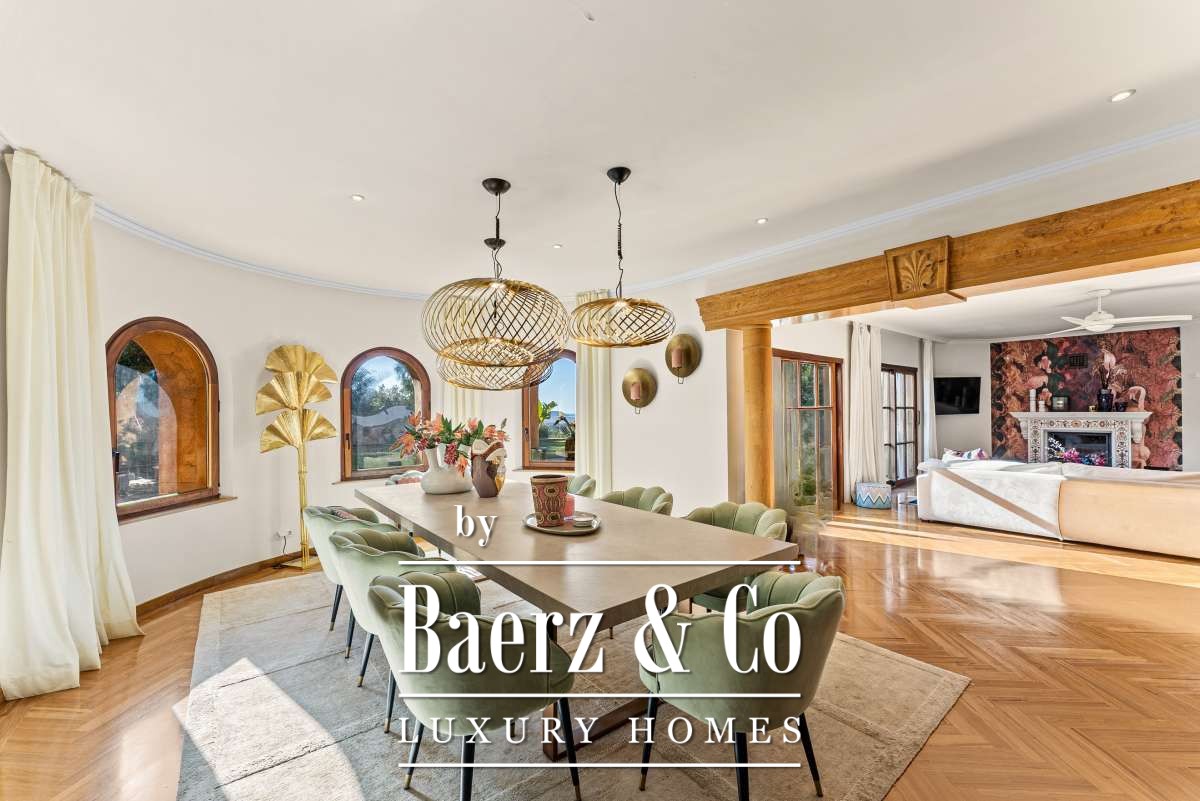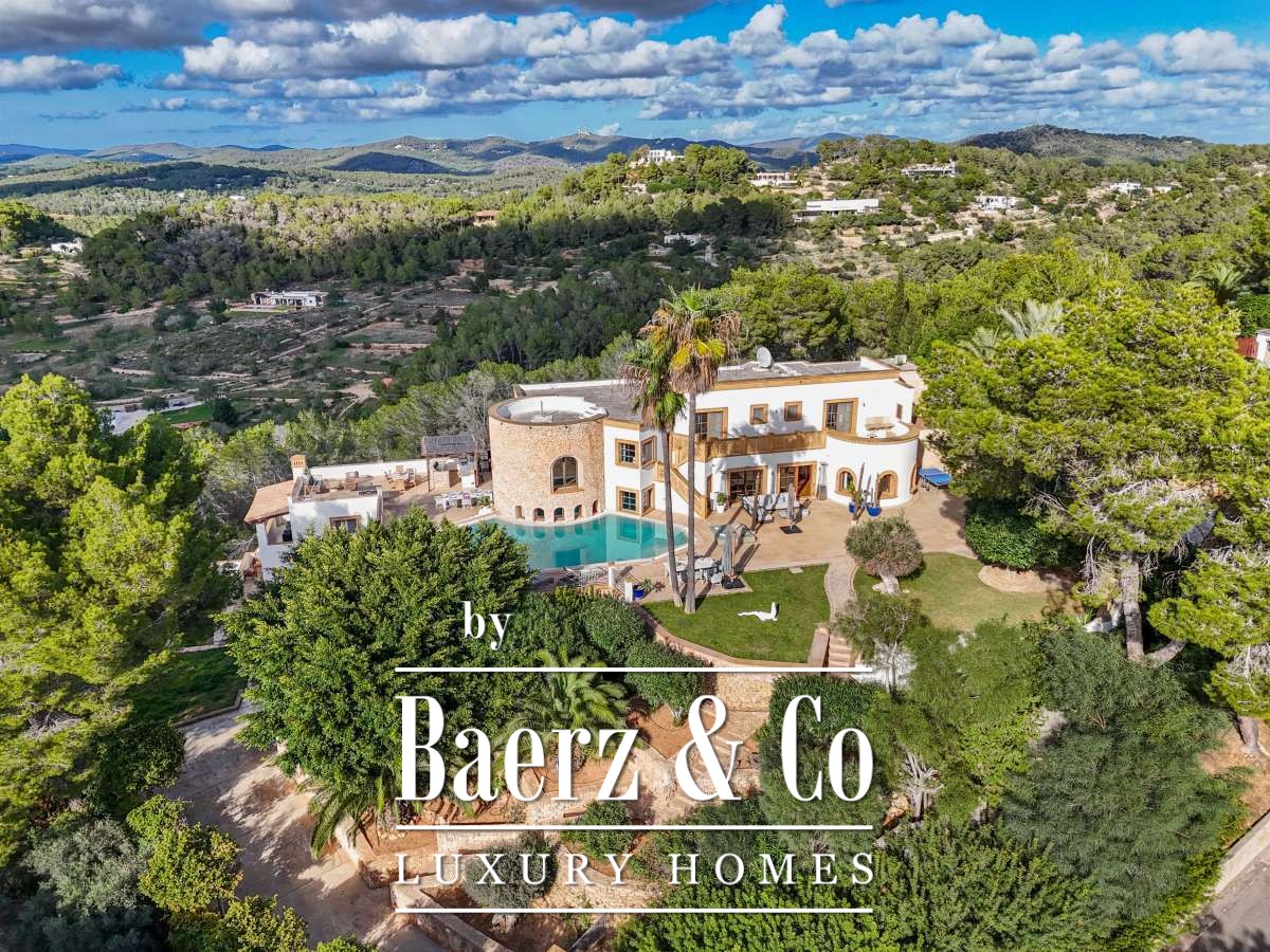 Villa Can Furnet with Panoramic Sea and City Views commands a privileged position within one of Ibiza’s most discreet and guarded residential enclaves. This villa articulates a rare sense of privacy, space and calm, yet Ibiza Town and Marina Botafoch remain within a ten-minute drive. The villa offers 992 m² of interior living over a 2,504 m² plot, with eight bedrooms and nine bathrooms, including two separate guest apartments with private entrances, thoughtfully designed for guests or staff who value privacy.