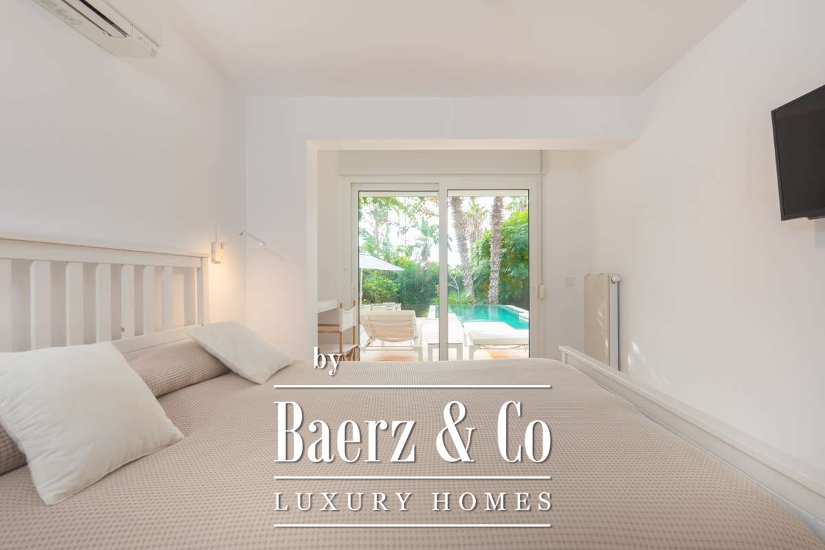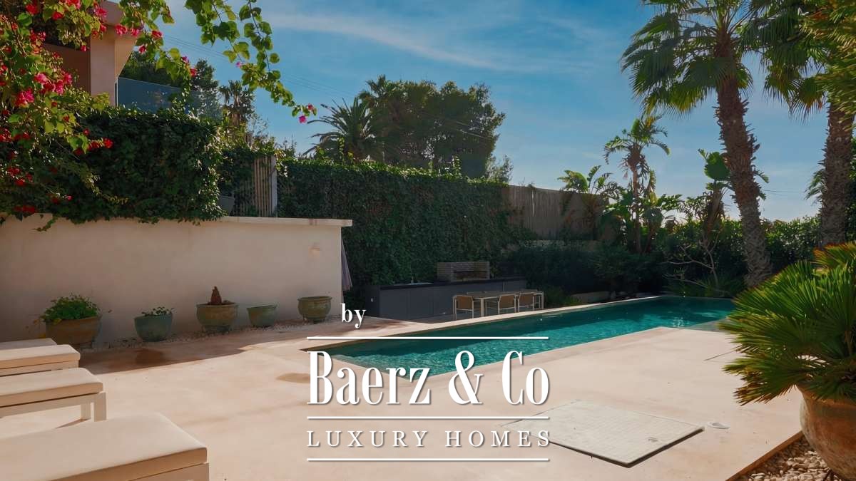 Multiple terraces, an outdoor kitchen, and a landscaped garden frame the south-facing private pool and panoramic sea and city views, inviting moments of repose throughout the day. Communal parking, alarm system, air conditioning, and security shutters add to a sense of effortless living. This luxury villa for sale in Ibiza stands as an embodiment of Mediterranean rhythm, offering serenity, light, and access to everything that defines Ibiza's unique allure.