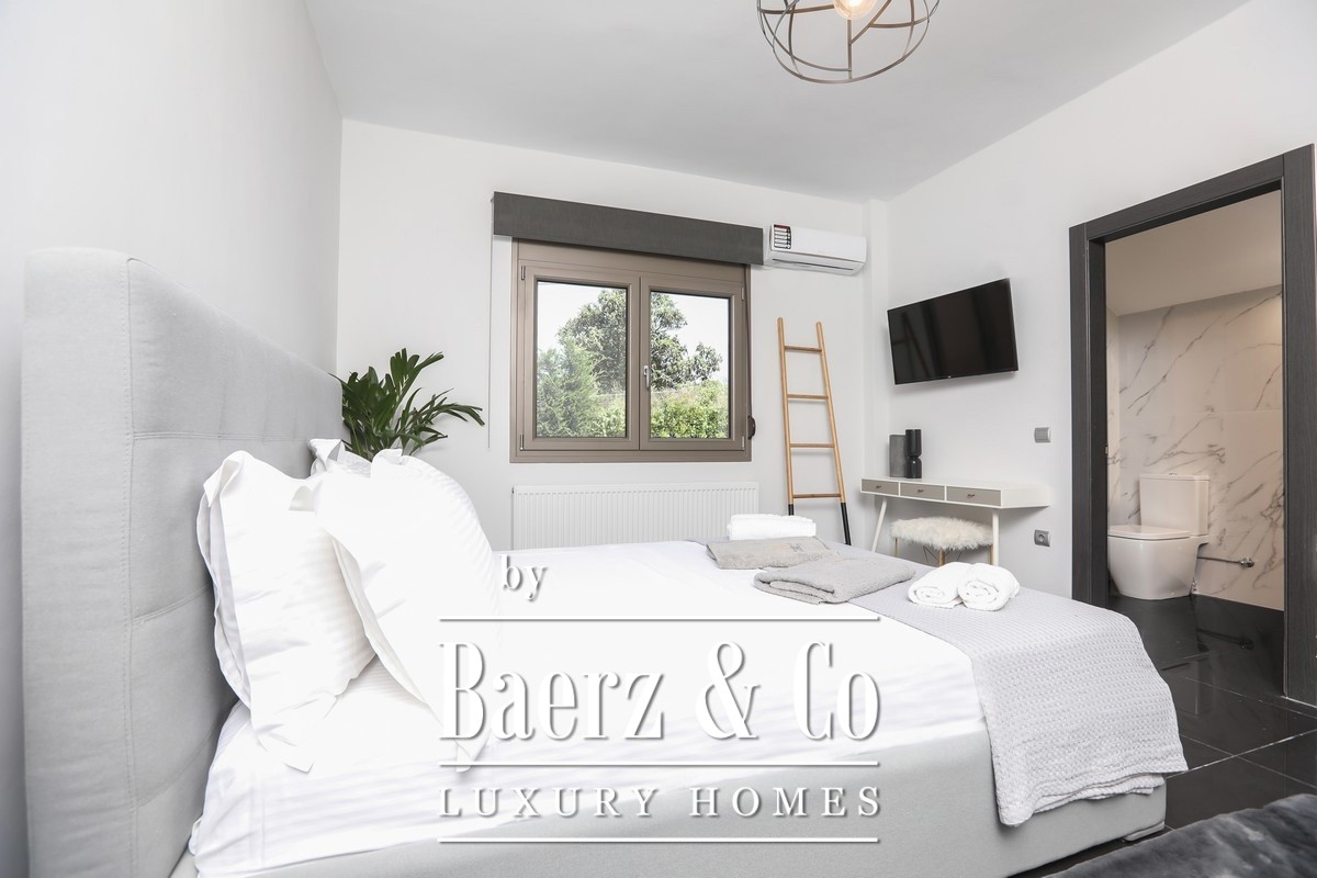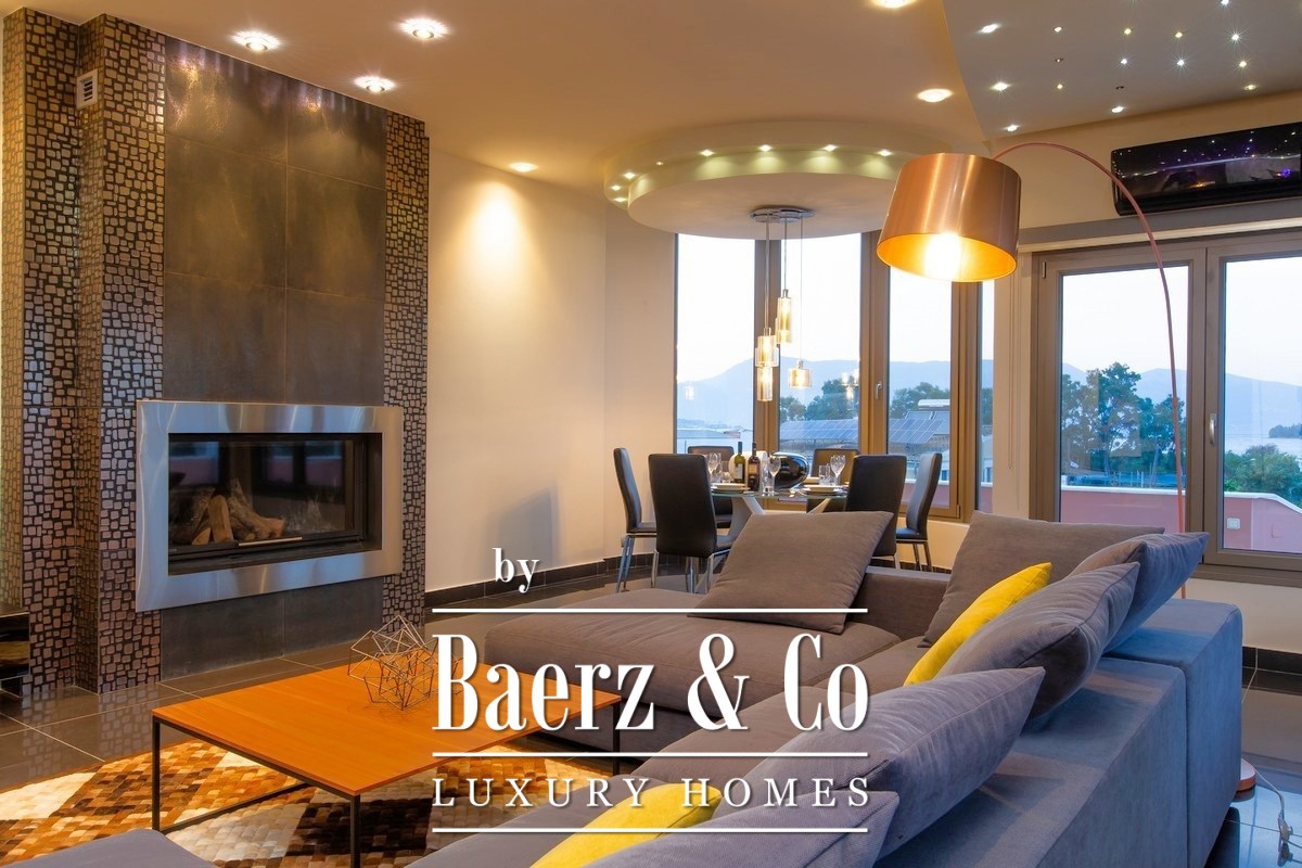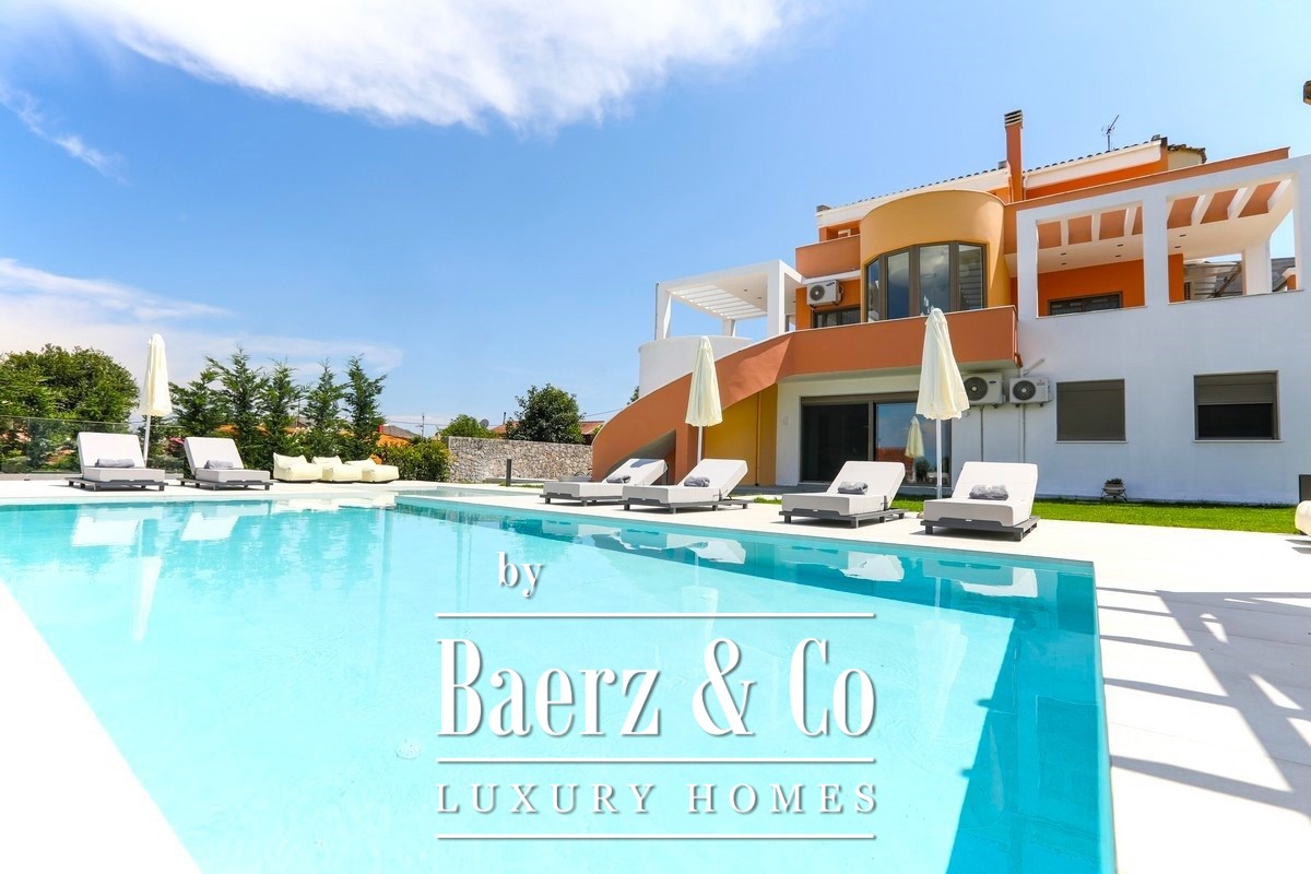 Attention to technical detail is clear: heat-pump heating and cooling, solar water system, energy fireplace, advanced security, and double glazing for insulation. The private pool is set within sculpted gardens and relaxation zones, accompanied by a covered pergola, outdoor dining, and fitted barbecue. Secure parking lies within the grounds. This villa Corfu represents the intersection of privacy, design, and timeless investment in one of Greece’s most globally recognized locations.