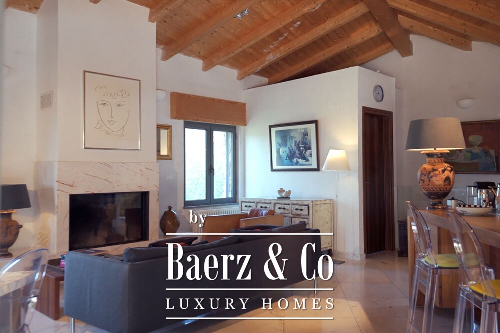 During the sustainable construction of Casa del Poëta in 2011, natural stones from the area were used, in addition marble and granite are recurring. The living room has a beautiful designer kitchen of walnut and stainless steel (Riva 1920) with built-in Miele espresso machine, large fridge, dishwasher, luxury oven and 5-burner gas cooker in a large cooking island. There is also a large atmospheric fireplace that fires very sustainably. The lounge room, separated from the living room by high glass doors also has its own fireplace.