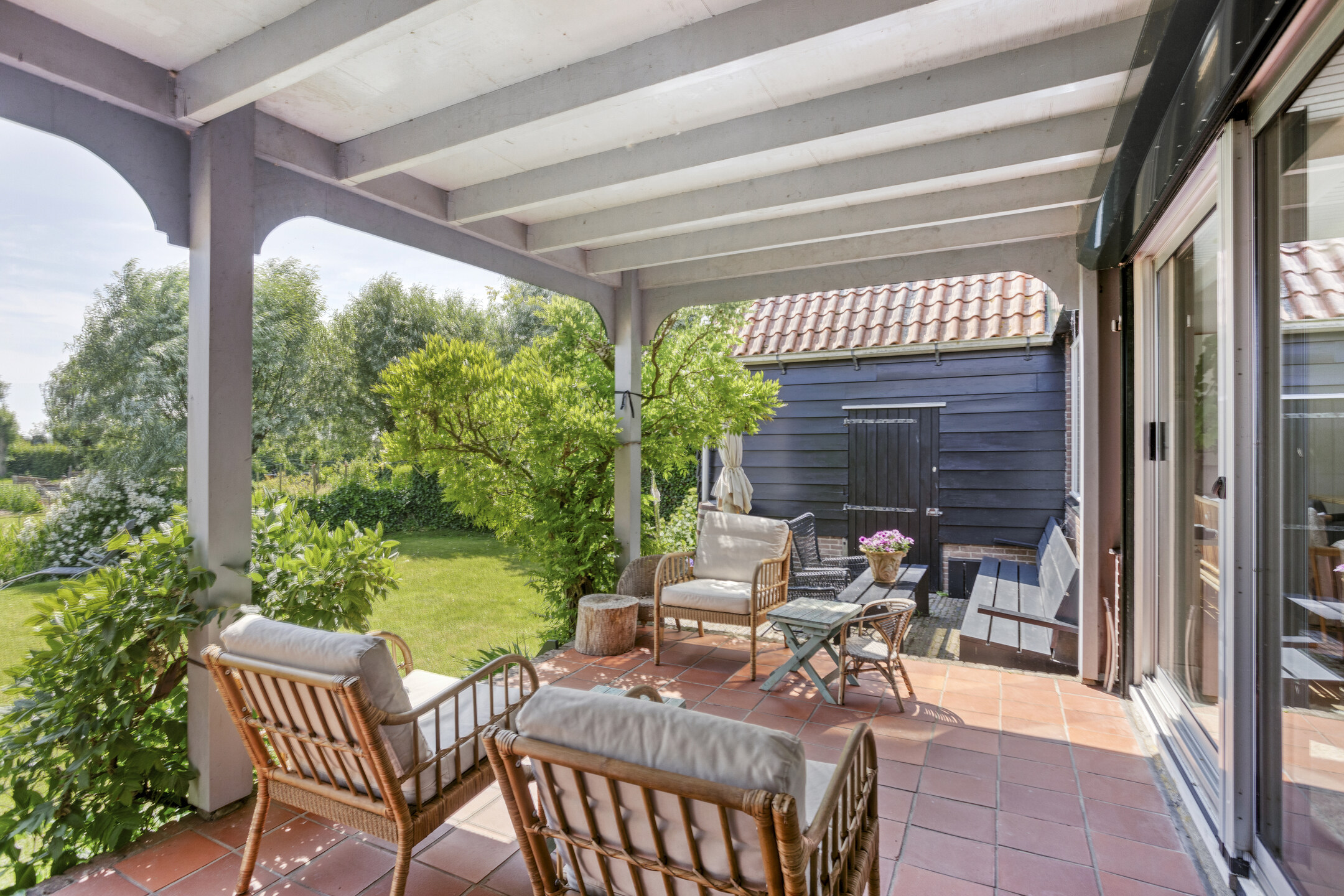 This semi-detached house Driehuizen brings together authentic architectural character and forward-thinking energy efficiency in a rare position overlooking the vast Eilandspolder reserve. The home, with 188 m² of interior space, is set across a charming 1957 front house and a substantial rear extension, renovated to an exacting standard in 2004. Red Cedar and Meranti cladding, hand-crafted oak floors, and classic shutters speak to an understated palette of materials bathed in generous natural light.