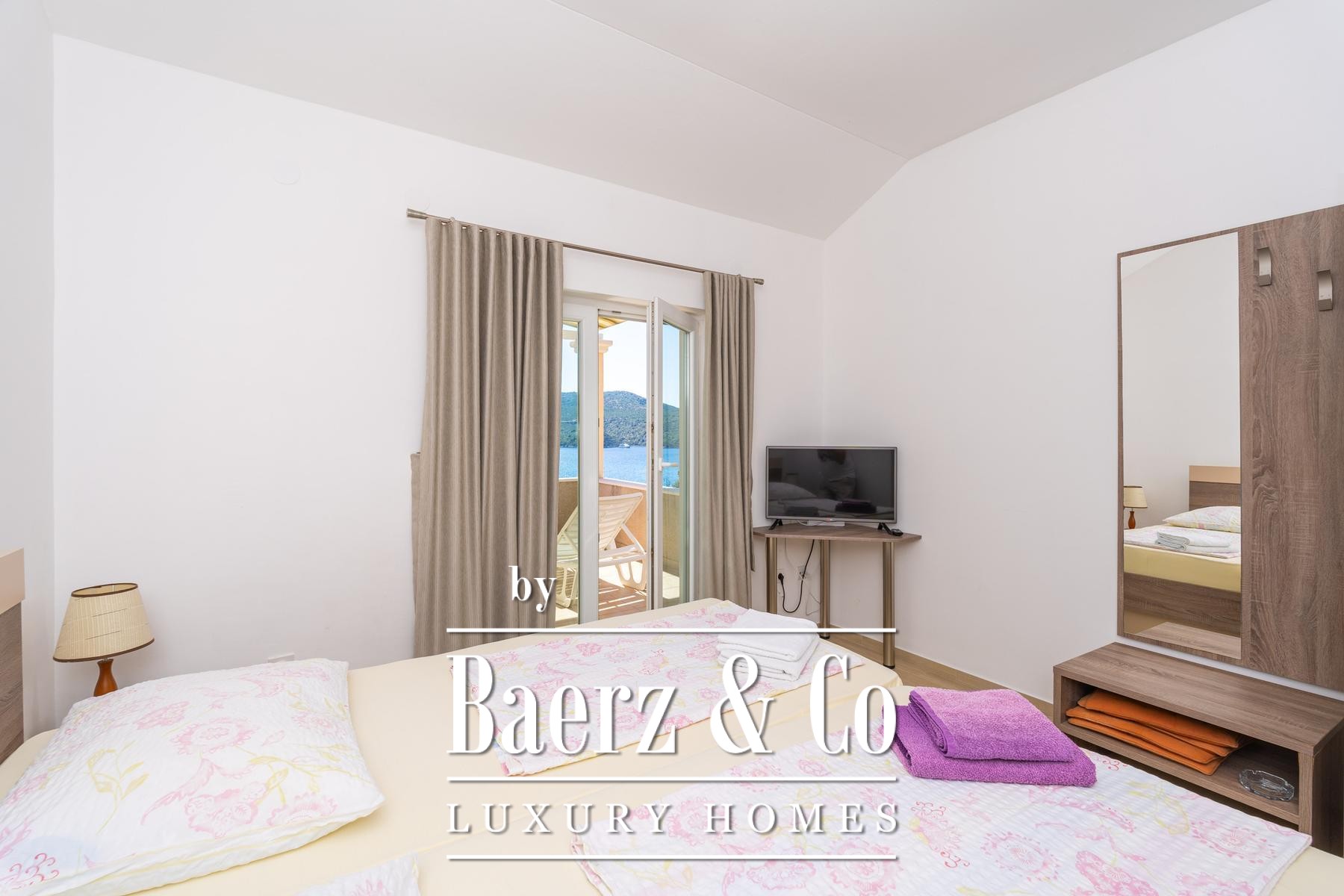 first floor features an entrance hall with access to two apartments. The studio apartment consists of an entrance area, bathroom, and bedroom with access to a covered terrace of 12.79 m². The larger apartment consists of a living room with a kitchen, loggia, two bedrooms, both with access to a terrace of 8.74 m².Adjacent to the property is a plot of land measuring 2,087 m², of which 708 m² is within the building zone, while the rest is agricultural land.For further information, please feel free to contact us.