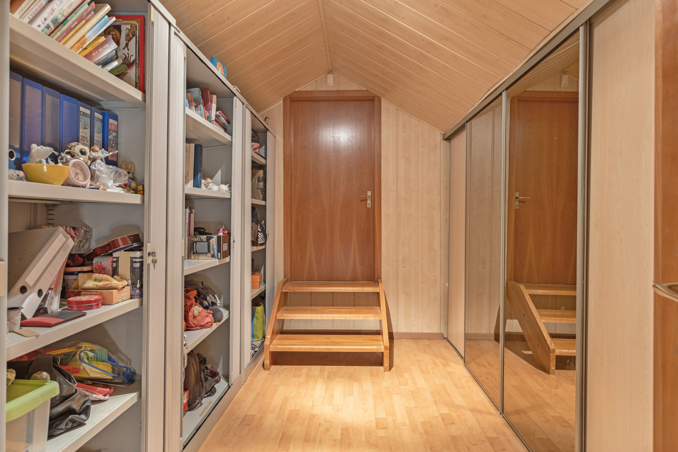 Landing with access to walk-in closets and two additional rooms. One is currently used as a bedroom, and the other as a storage space, though it offers great potential to be converted into an extra bedroom.