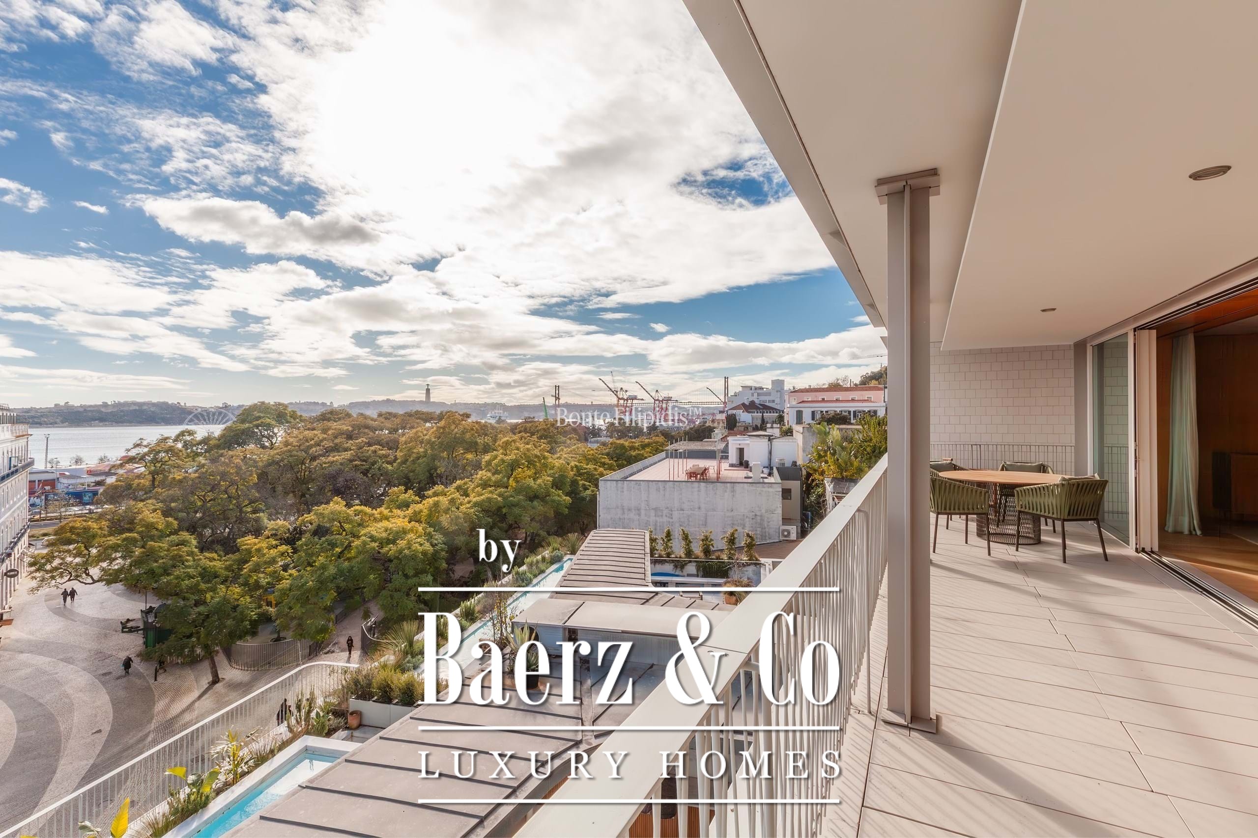 Apartment Estrela Lisbon is set in the creative enclave of Santos, known for its energy and riverside allure. This four-bedroom residence offers 248 m² of living space, where refined design and light are constant companions. A 46 m² private terrace, oriented south, connects interior and exterior, framing panoramic views of the Rio Tejo, Cristo Rei, and Largo de Santos, and offering sunlight throughout the day.
