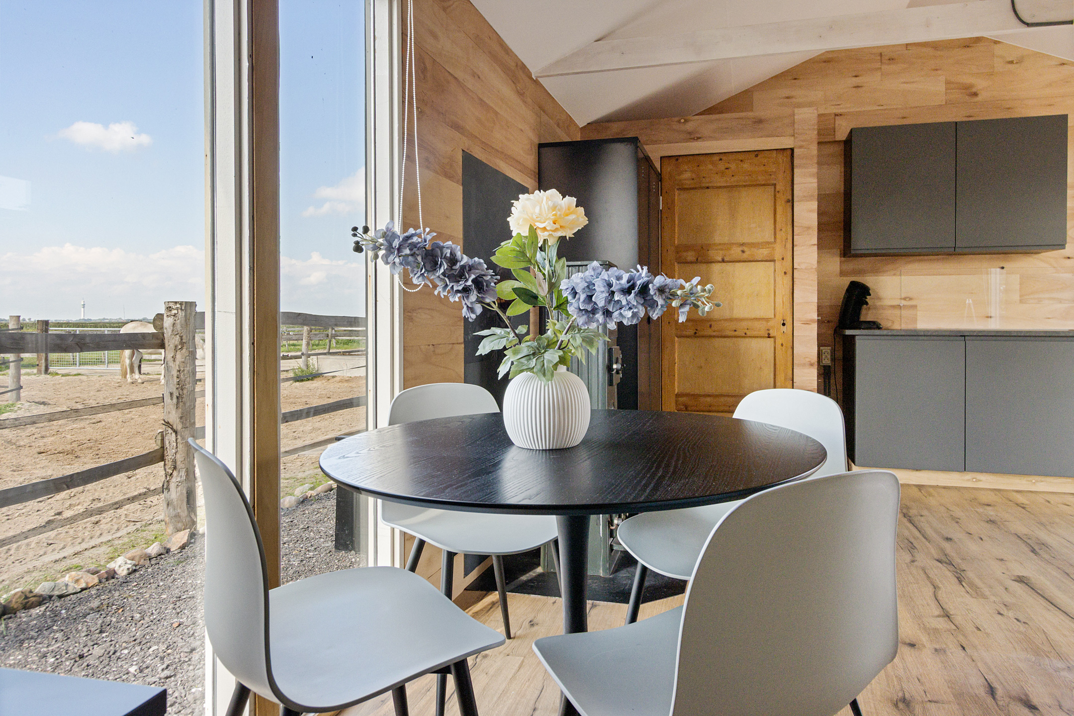 Surrounded by the vast Frisian countryside, this characterful farmhouse with veranda offers a generous workshop barn with hay barn, a professionally designed paddock paradise, and a charming tiny house. Here, you can enjoy the ultimate outdoor lifestyle in peace and privacy, while all amenities remain within easy reach.