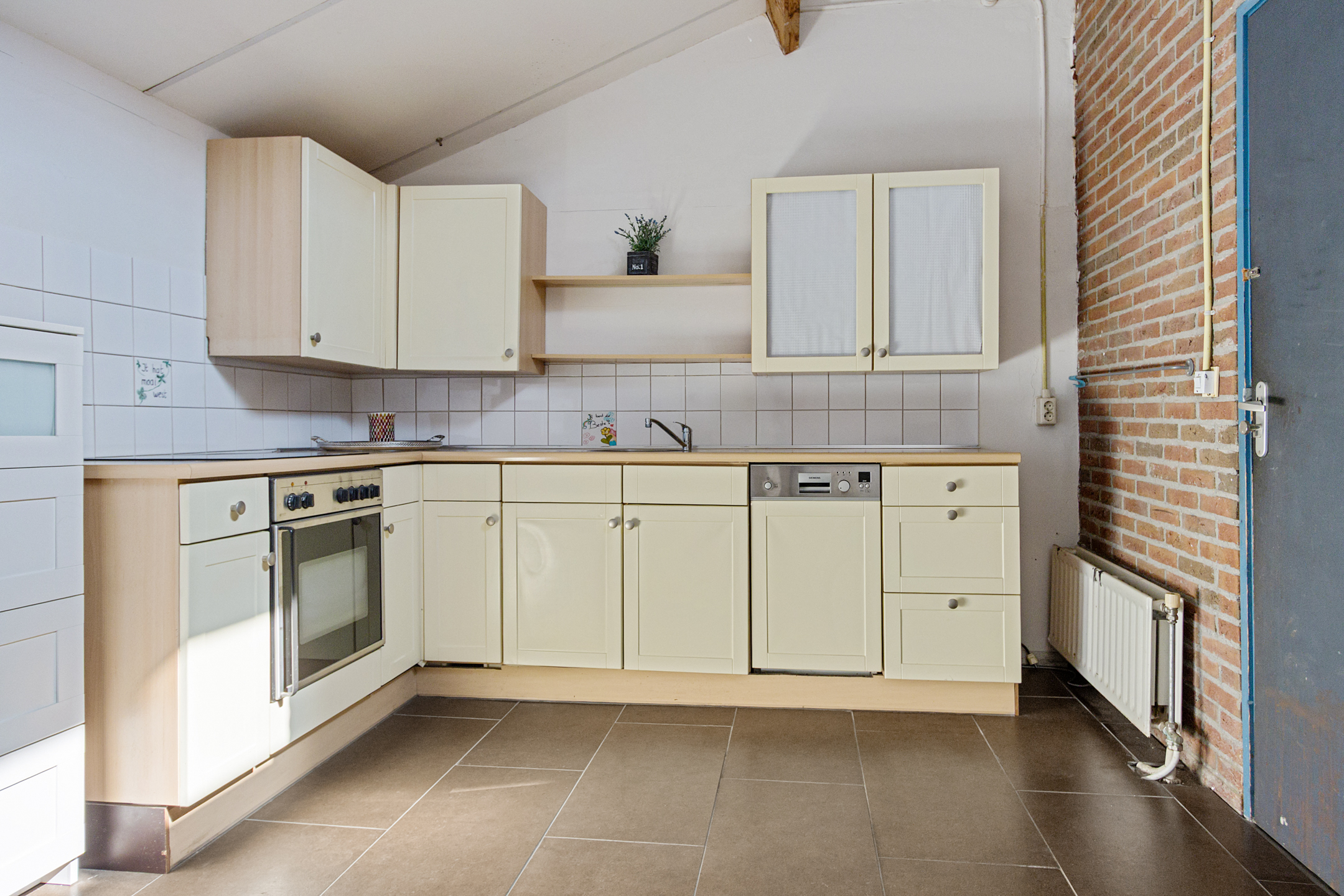 The cosy kitchen is finished in light tones and equipped with appliances from 2024.