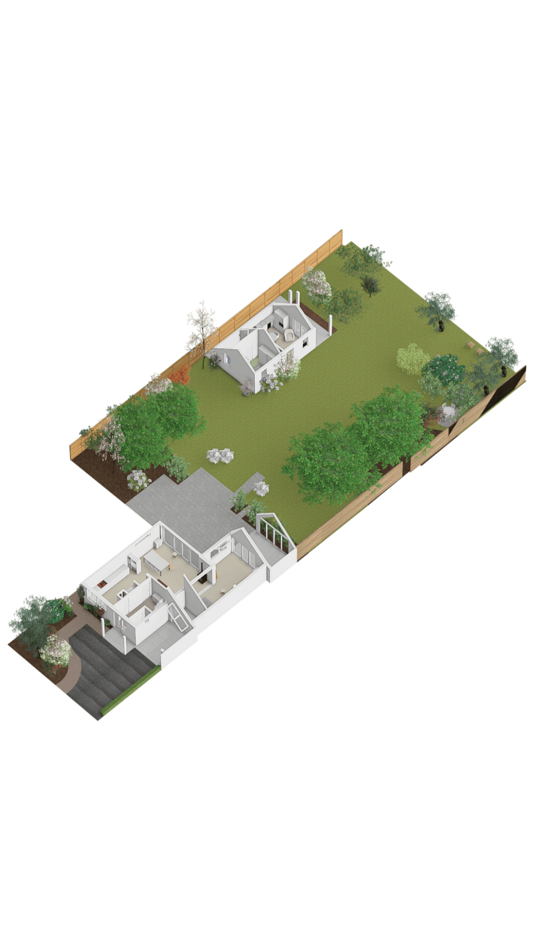 In 2025, the front garden was redesigned with a driveway that fits three cars and a carport. At the rear of the garden stands a brand-new, fully insulated outbuilding, complete with its own central heating, modern bathroom, and kitchen. Ideal as: