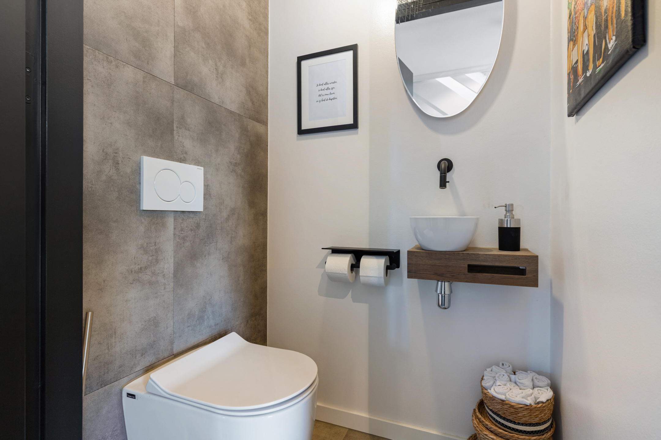 Via a fixed staircase, you reach the second floor, with two bedrooms and a large walk-in storage room (possible additional bathroom). Both rooms have high vaulted ceilings, creating a playful and spacious atmosphere. One room also features its own walk-in closet.