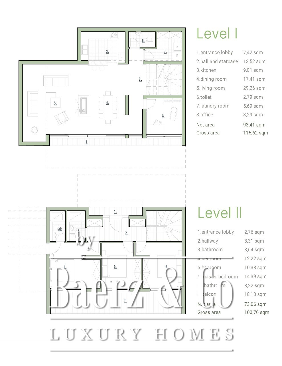 The villa has 2 levels. It has a pool. There are parking spots on the plot of the villa. It is connected by an asphalt road to the main road.