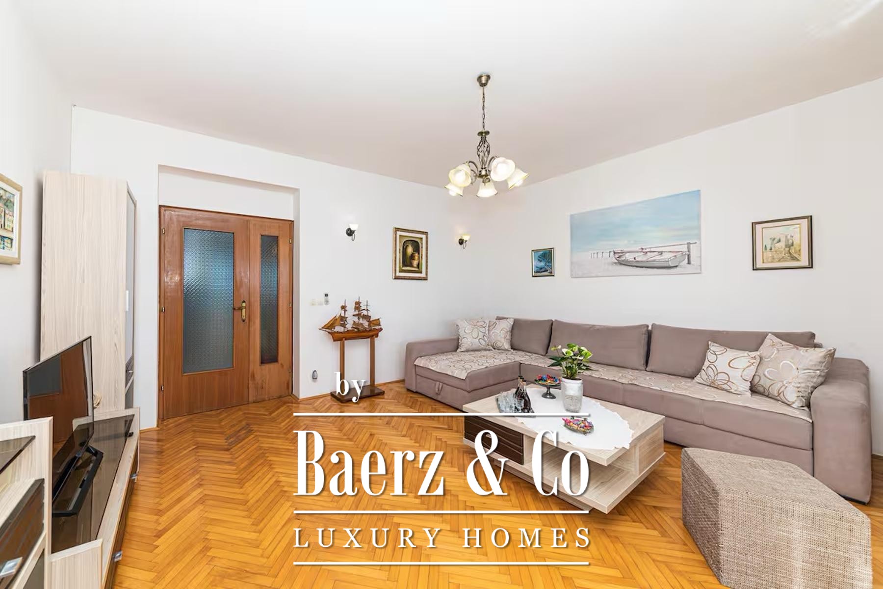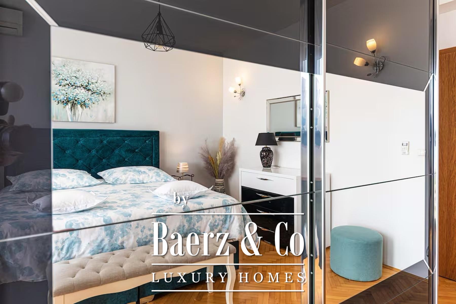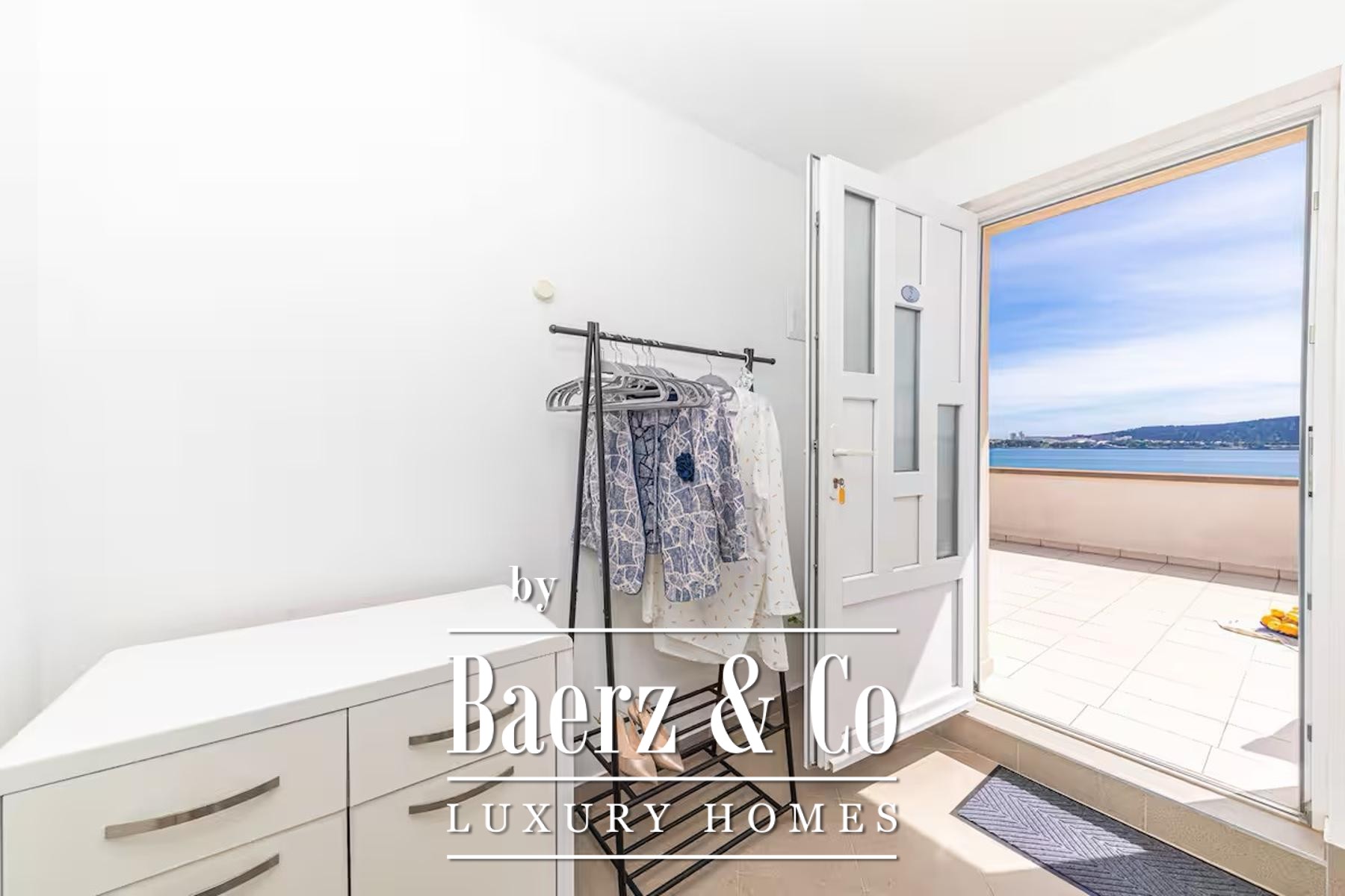 Kaštel Sućurac, a beautiful house with a private pool in the first row to the sea.It is located on a fenced plot of 739 m2 and is divided into four floors.In the basement there is a garage with a parking space, a storage room and an air-conditioned section with fitness equipment, table tennis and billiards.The ground floor has three bedrooms, two bathrooms, a kitchen with a dining room, a living room and a spacious terrace with outdoor furniture for socializing.On the first floor of the building there is a two-bedroom apartment of 88 m2 in the unfinished