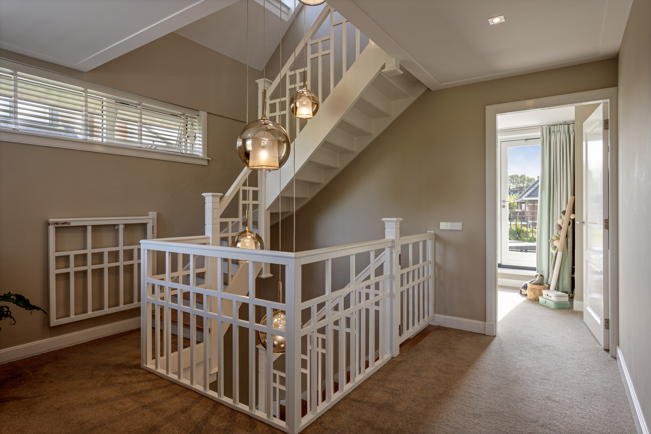 Upon entering there is a generous bright entrance with beautiful staircase and toilet room. Through the steel door we enter the generous, very bright living room with work corner and French doors to the beautiful garden. At the rear of the house is a large modern kitchen with cooking/sink island and breakfast bar; plenty of space for cozy dinners with friends and family. Again, large windows provide an abundance of light. A utility room is of course not missing; this is also where the washing equipment is located.