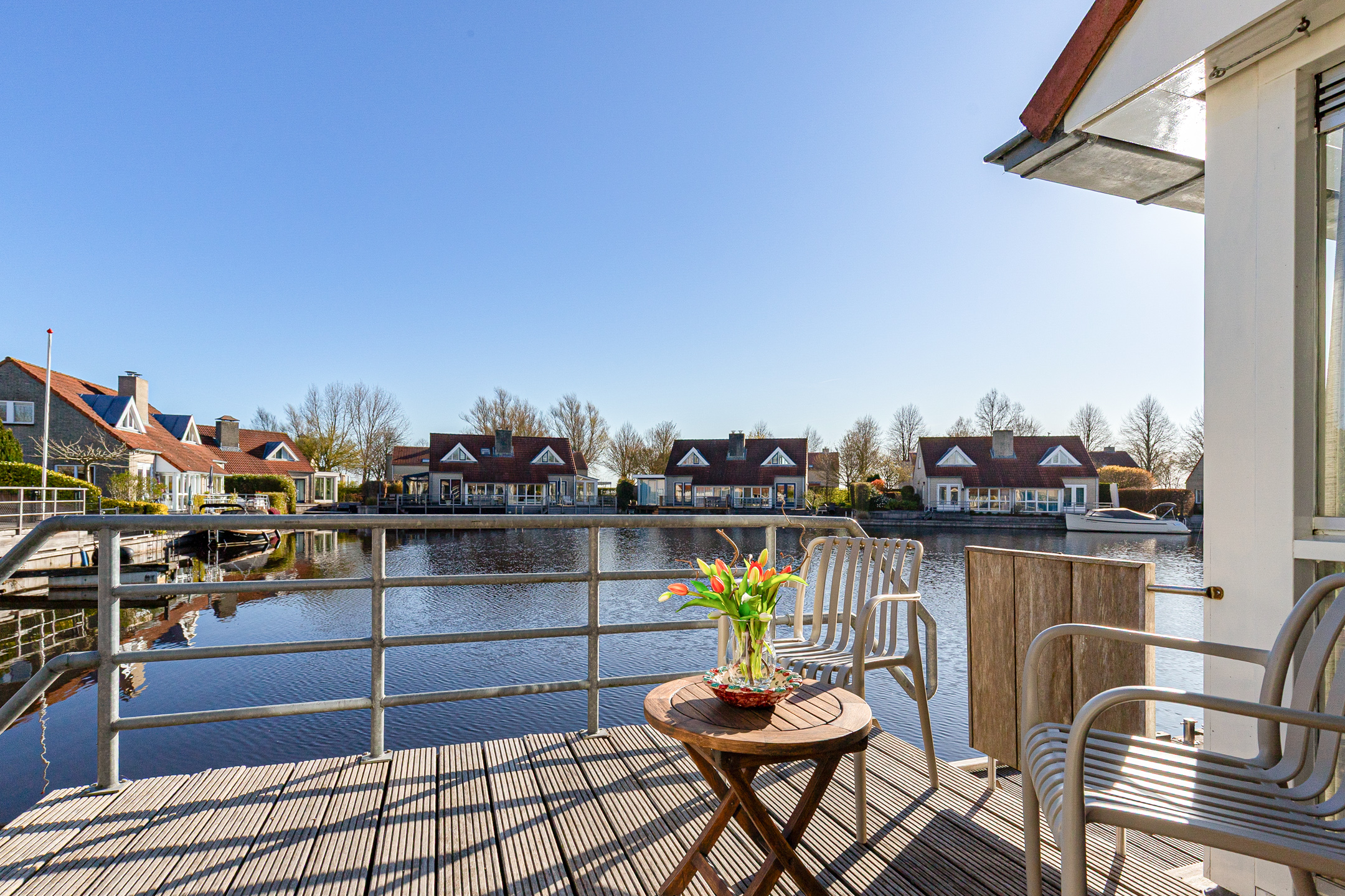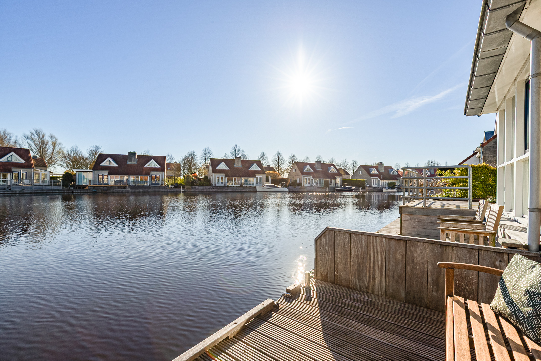 This waterfront house in Langweer captures the essence of waterside living—balancing discretion and ease with the freedom of direct water access, all in an atmosphere of understated luxury.