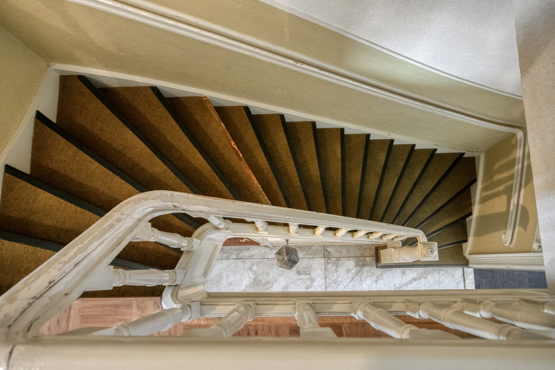 Behind its facade, the home preserves the elegance of its era: high ceilings, tall windows, generous detailing in façades, stucco, staircases, and doors. Upon entry, a marble hall with lofted ceilings and stately stairs mediates a calming transition from city pace to interior quiet. The classic living room, with original ensuite doors and ornamental ceilings, opens to a luminous eat-in area and a garden-facing conservatory. Eight bedrooms unfold across the first and second floors, with a study, walk-in closet, and flexible guest or work spaces, accommodating family living or home working.
