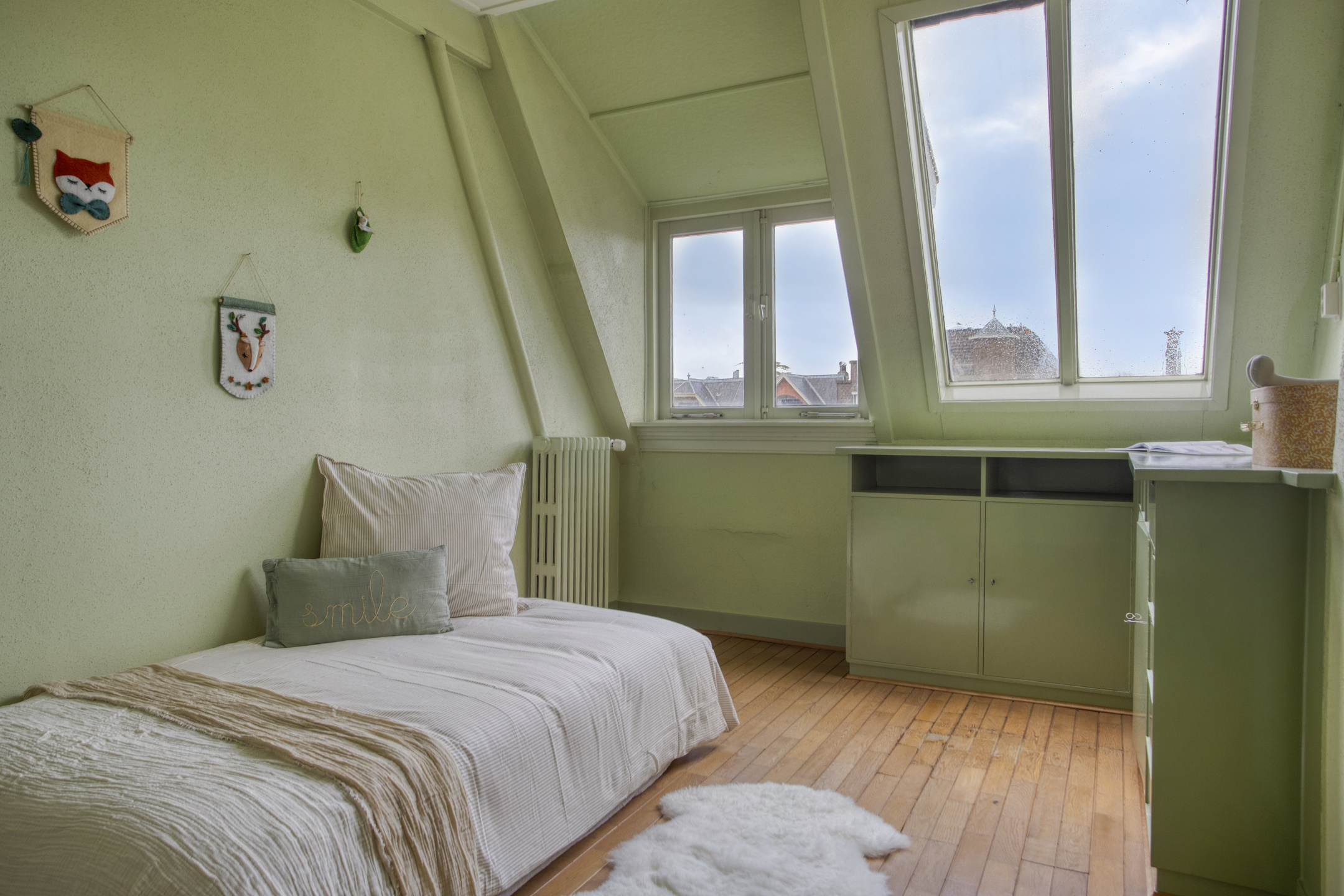 Outside, the deep rear garden faces south west, ensuring ample sunlight yet offering shaded views from mature trees. Beyond lies a private, 1,318 m² enclosed lot, shared among neighbors, with space for children’s play, gathering, and water access. Essential amenities, schools, transit, green parks, and urban offerings lie nearby. This townhouse, a registered municipal monument, carries period character, partial double glazing, central heating, and inclusion in a residents’ association.