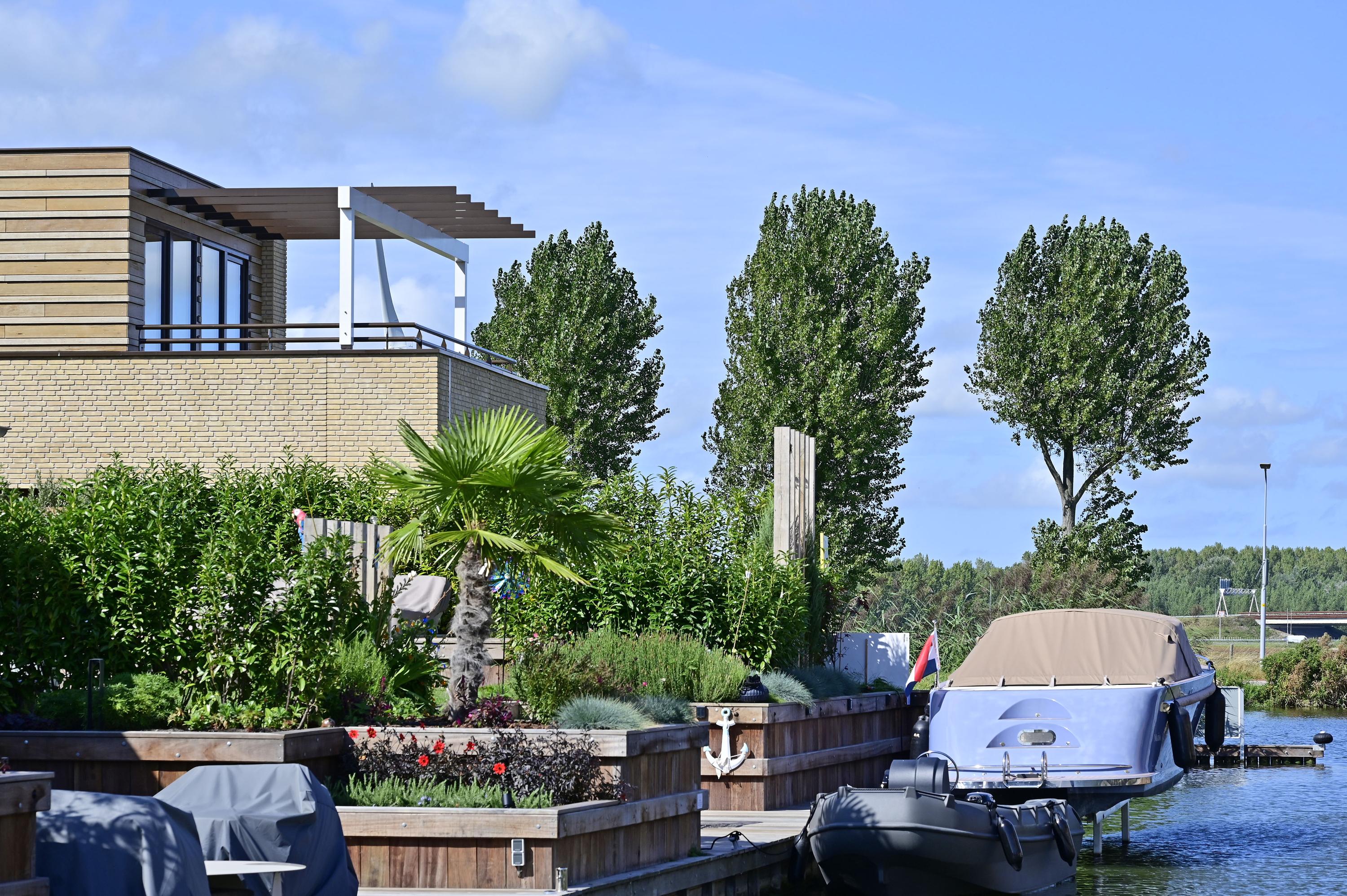 The garden has an excellent location and offers connections to the water everywhere. Here you can enjoy long evenings, panoramic views, and the tranquility of rippling water. There is now a large 60m² concrete terrace facing southwest, but of course, there is room to create multiple terraces, decking, or seating areas. The garden borders directly on the Ringvaart canal. From your own mooring, you can sail whenever you want to De Kaag, the Braassemermeer, the Westeinderplassen, and beyond. This is a place where you can really breathe after a busy day.