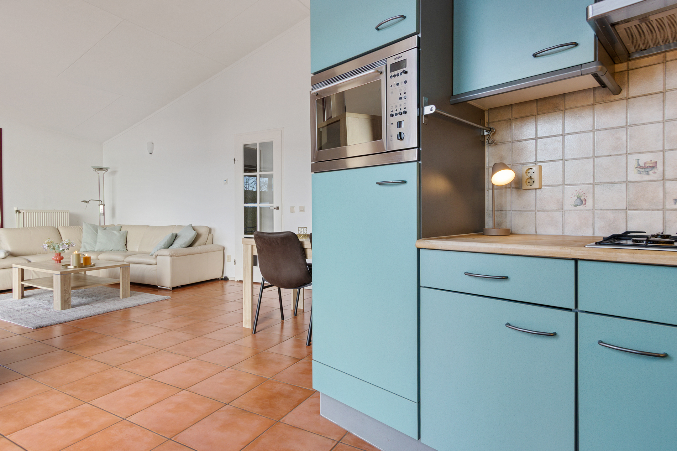 The open corner kitchen is practically designed, fitted with built-in appliances and directly connected to the living area. In addition, the property offers: