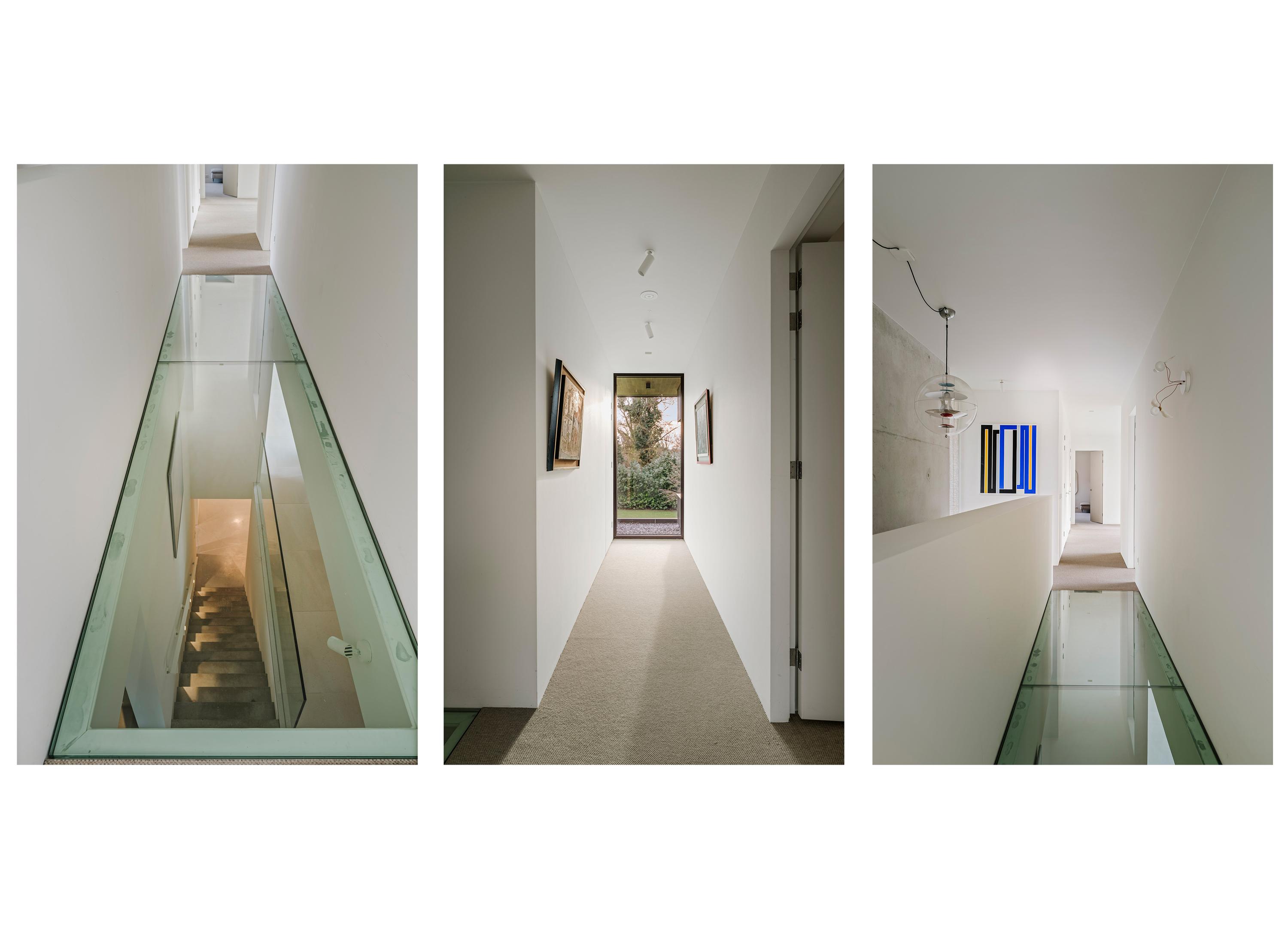 Architect Bart Vos designed the villa as a coherent whole in which wasserstrich bricks (from Petersen), copper, glass and wood (pine and teak) have been used consistently both inside and outside. With a usable area of 547 m² and a volume of 2,069 m³, this is a voluminous house, but thanks to its understated design and location on a spacious plot, the whole remains in perfect balance.