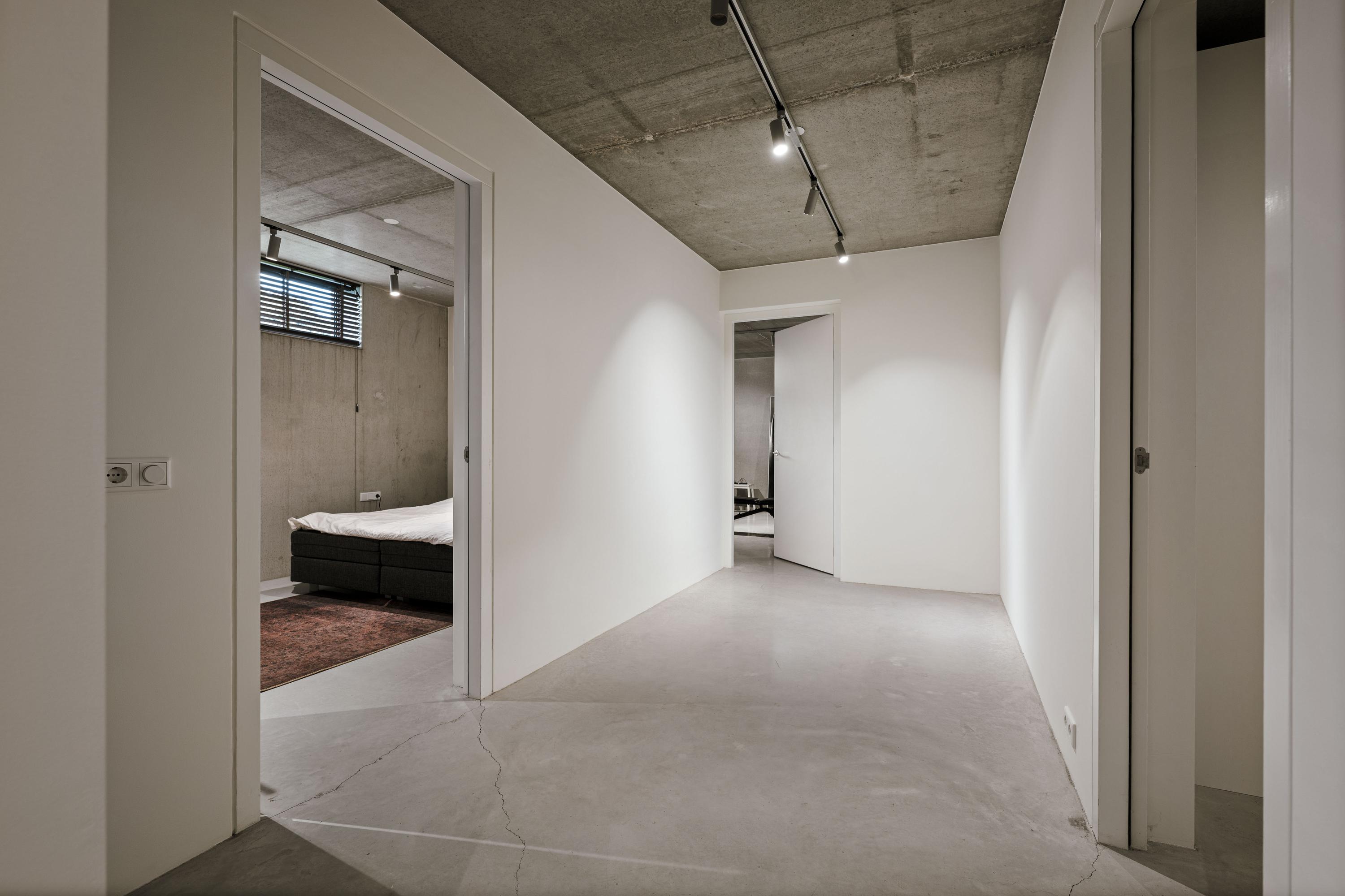 The basement is a fully-fledged living area with natural light at the front. The robust concrete ceilings and walls give this floor its own contemporary character. Here you will find a spacious studio, chill-out or fitness room, an extra bedroom with en-suite bathroom, a large laundry room and the technical installations. The house is equipped with a geothermal heat pump, 30 solar panels and a buffer tank of approximately 750 litres. The A++ energy label underlines the sustainable and future-proof character of the house.