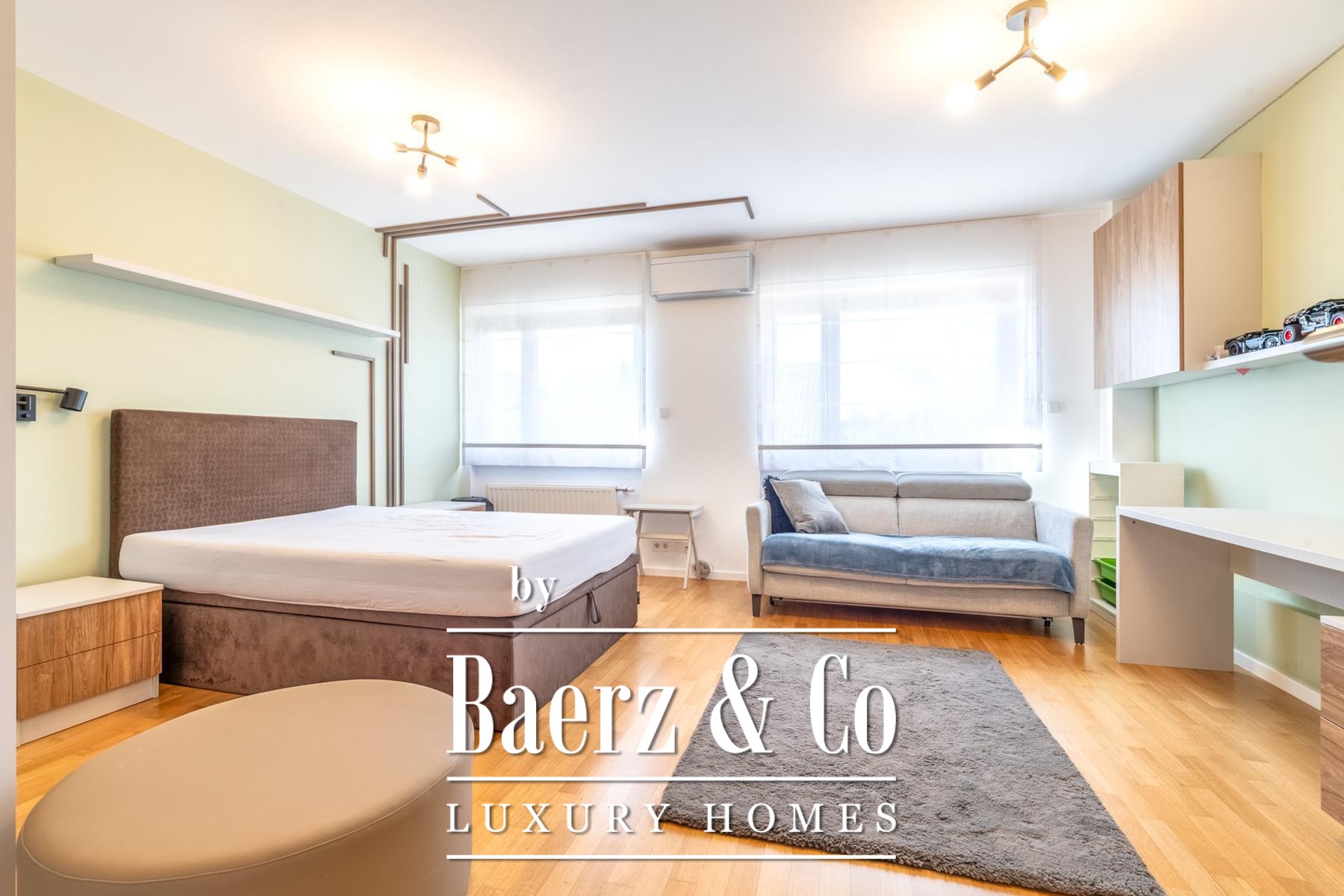 Zagreb, Maksimir, Barutanski breg, excellent luxury house of 280 m2 on a plot of 432 m2, built in 2010 with top-quality materials and equipment, designed by the renowned architect Pecotić. Divided into 4 floors that are connected by an internal staircase.Ground floor: spacious garage for 2 cars and 3 outdoor parking spaces, gym, utility area, toilet, storage room, laundry room with Miele appliances, exit to the landscaped garden.High ground floor - living area: spacious living room with kitchen and dining room and exit to the terrace and beautifully landscaped garden, guest toilet.First floor - 2 large bedrooms that were created by opening the third and fourth bedrooms, which achieved significantly greater functionality of the space, and if necessary, it is possible to restore it to its original state and have 4 bedrooms with an area of 11 m2. The floor has 2 bathrooms with showers.Second floor: the master bedroom with a walk-in wardrobe and a large bathroom with a shower, bathtub and Finnish sauna