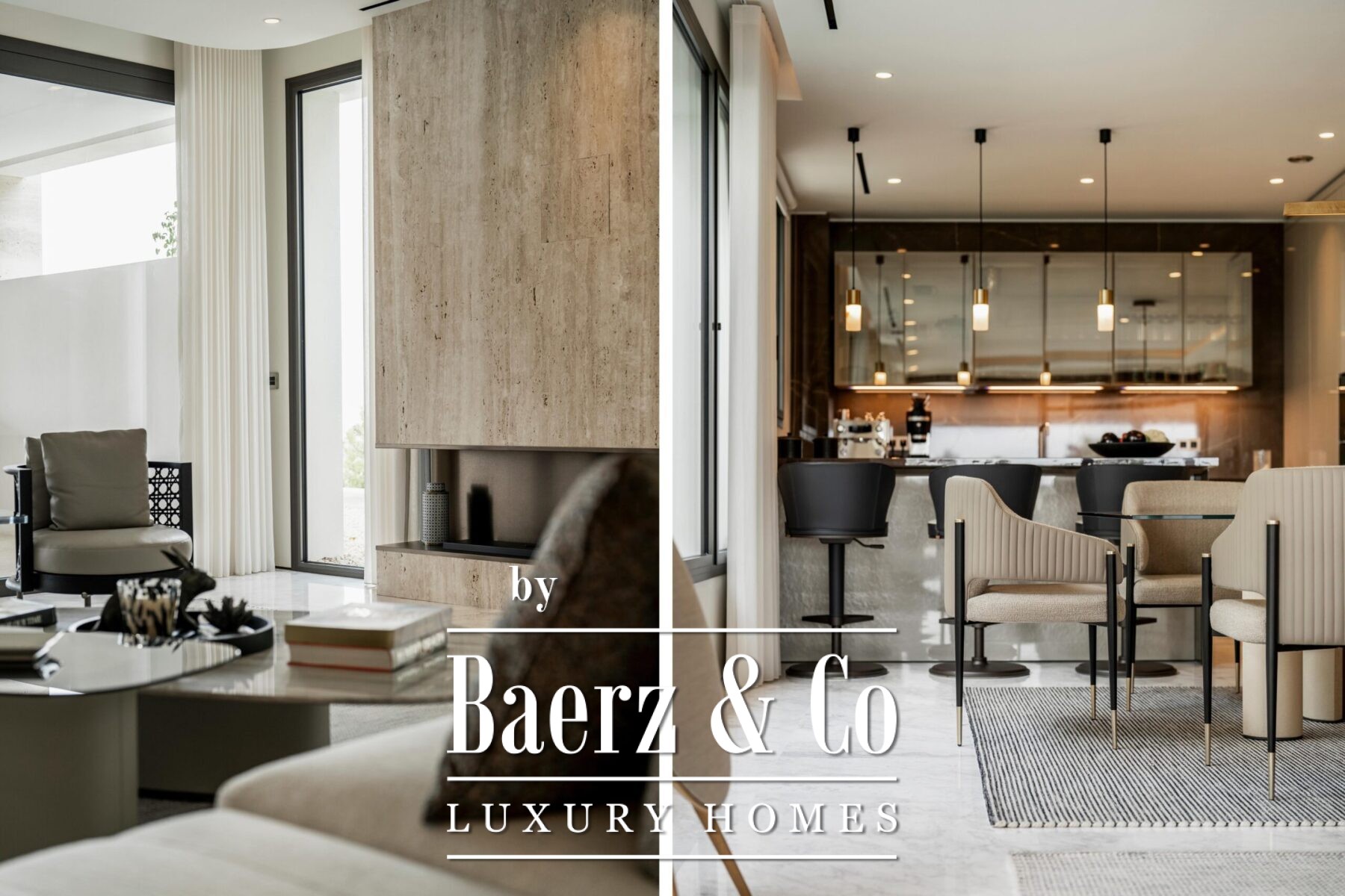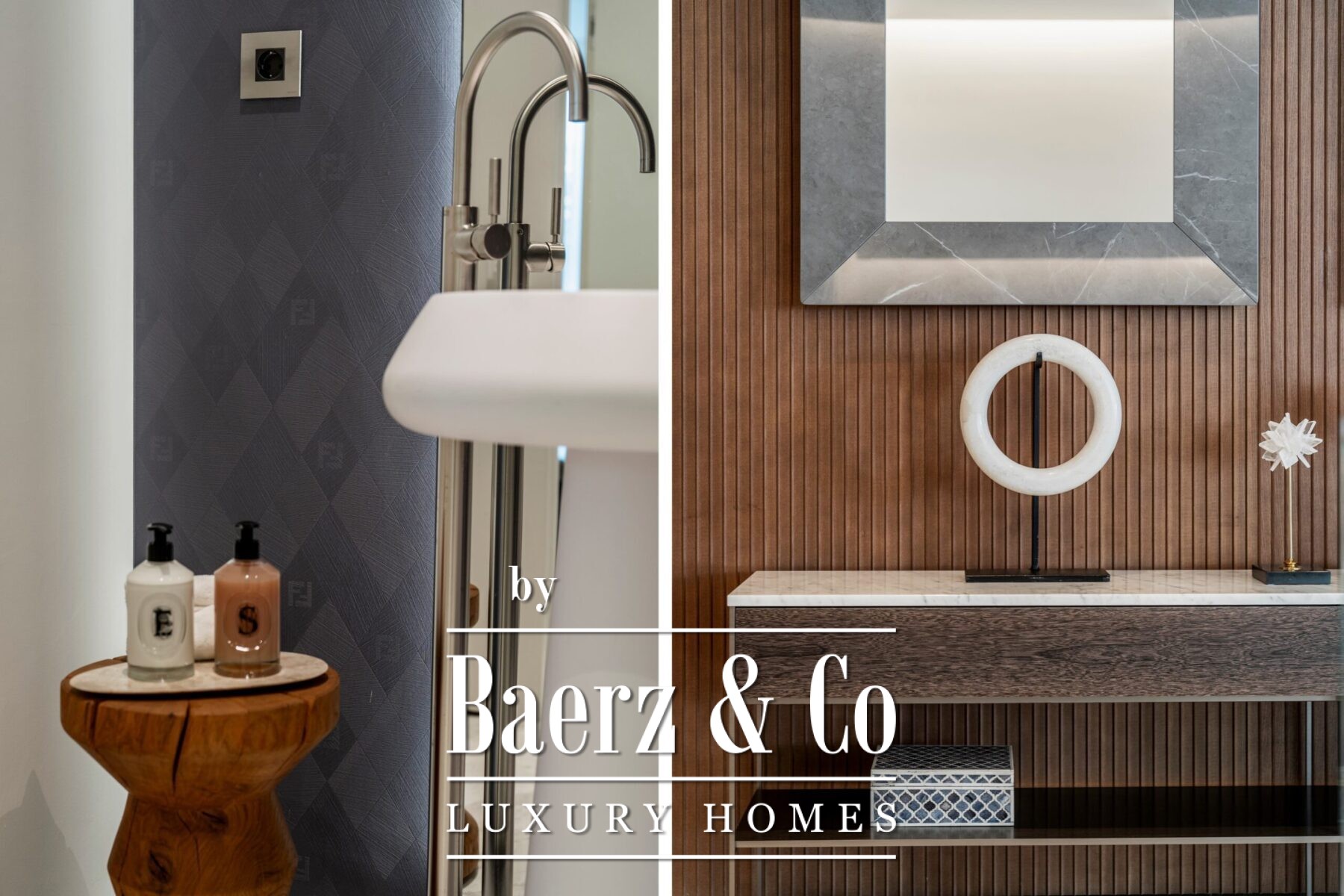 Every corner pays homage to exquisite details, from Fendi-designed wardrobes and kitchen furnishings to custom wooden panels on the walls, Travertine marble bathrooms, and high-end finishes. Interiors by GC Studio blend renowned Italian brands like Gallotti & Radice and Giorgetti with fine materials such as Carrara marble, natural stone, onyx, and genuine leather. Within the exclusive community, this residence redefines refined living in one of Marbella’s most privileged settings.