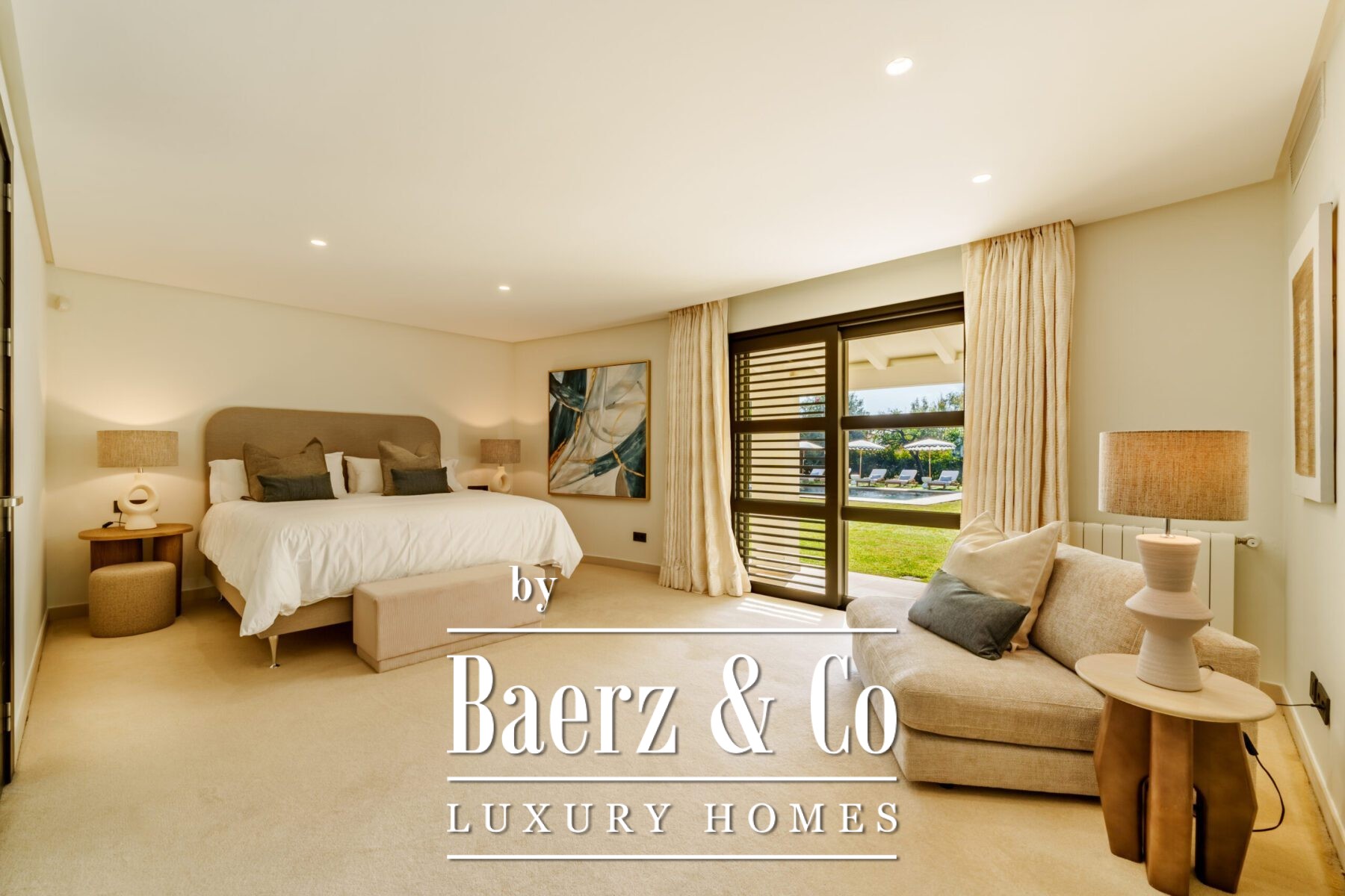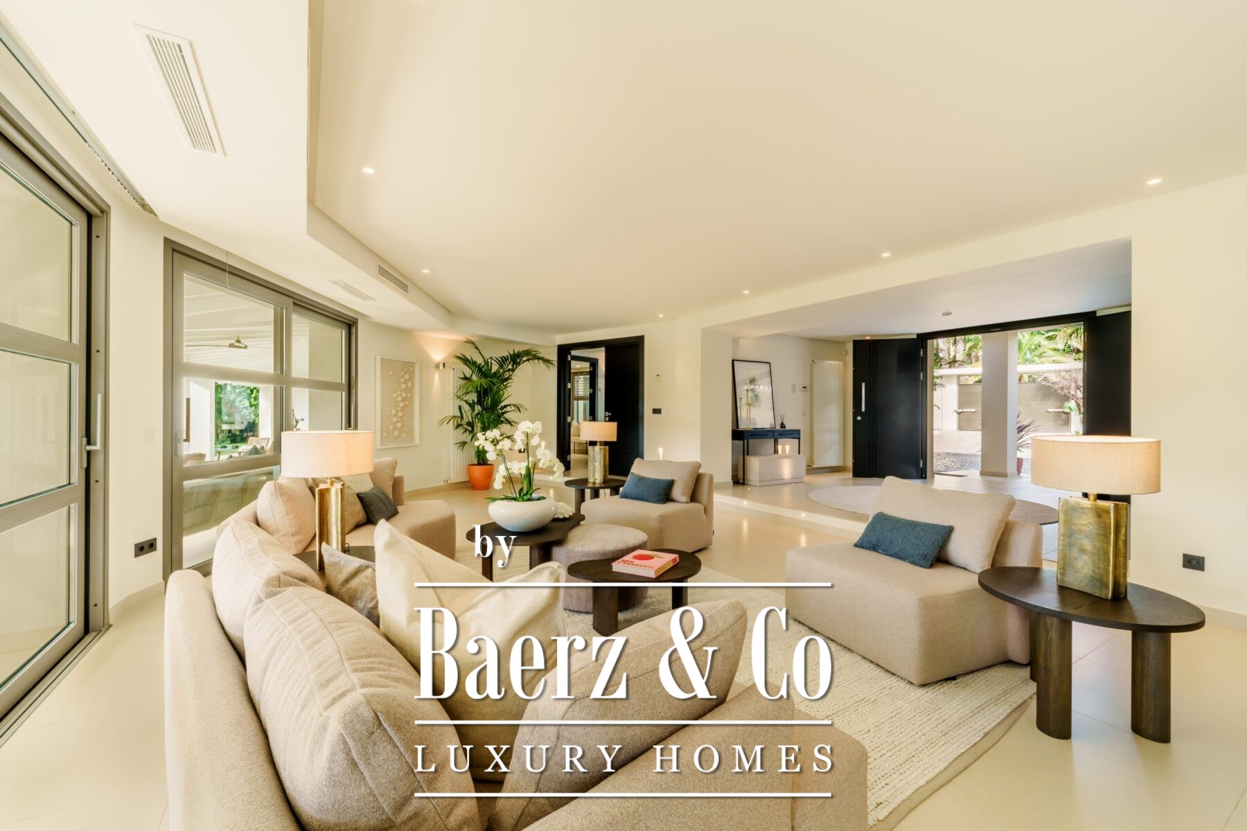The villa offers 5 serene bedrooms and 5 bathrooms, including two spacious en-suite bedrooms with direct garden access. Additional highlights include 2 very large living rooms, a home library and home office. Additional features include a garage for up to 4 cars, a water tank, Lutron lighting, and Technal security windows, ensuring unparalleled comfort and safety in this magnificent home.