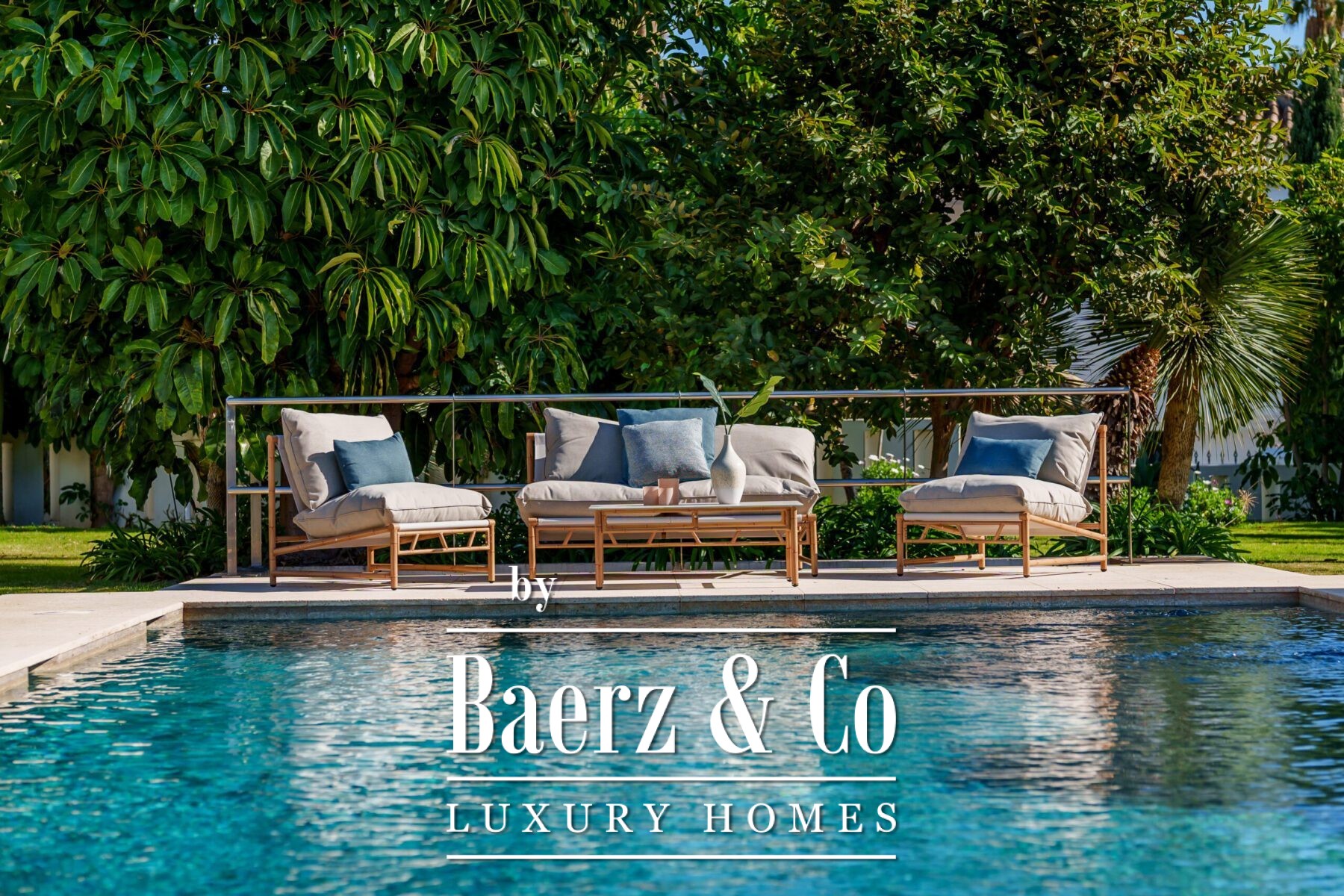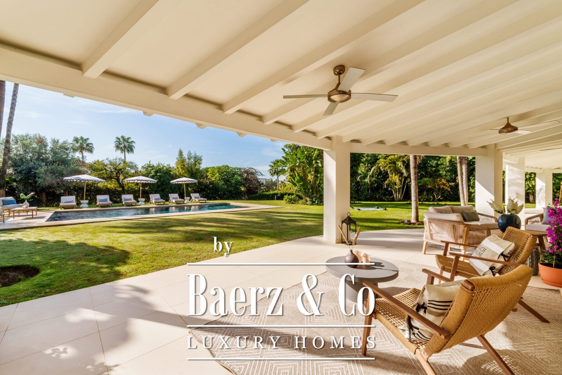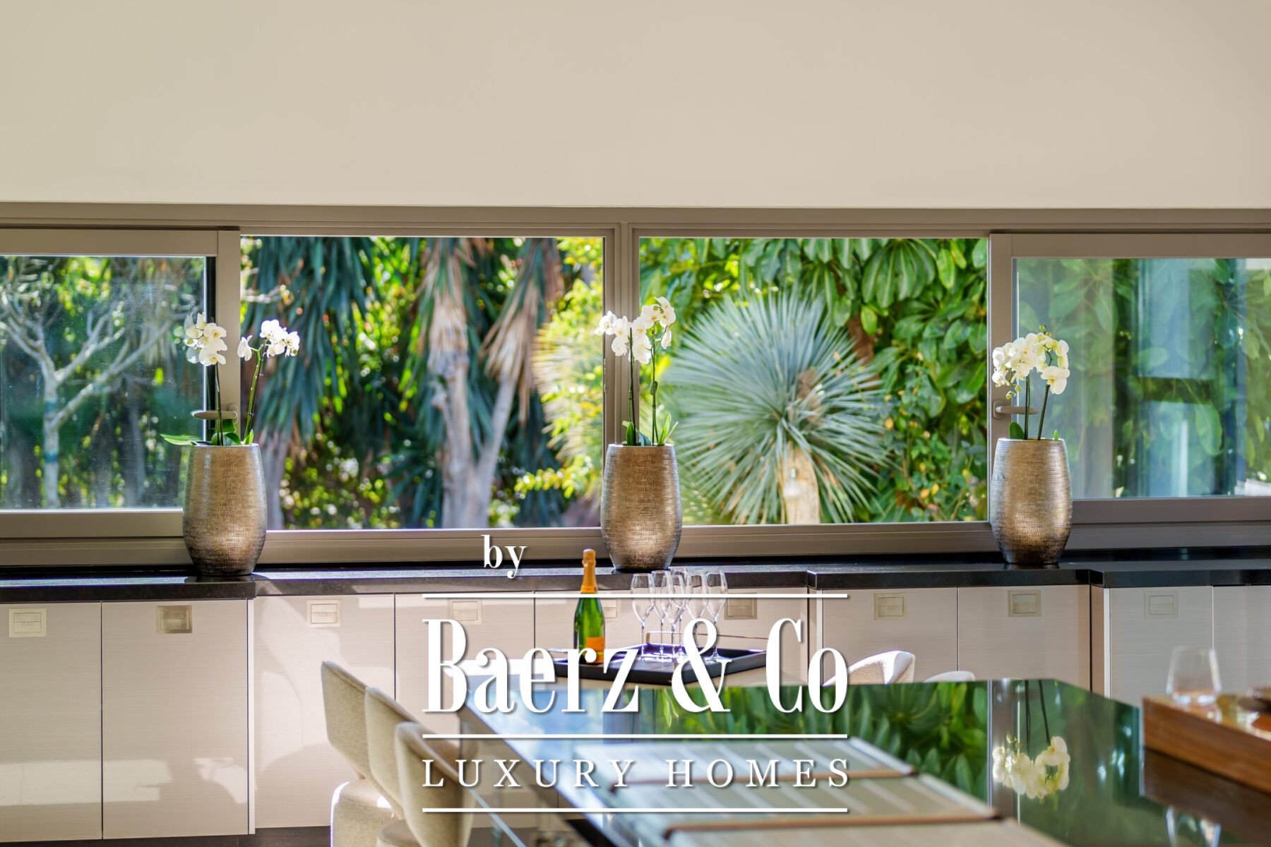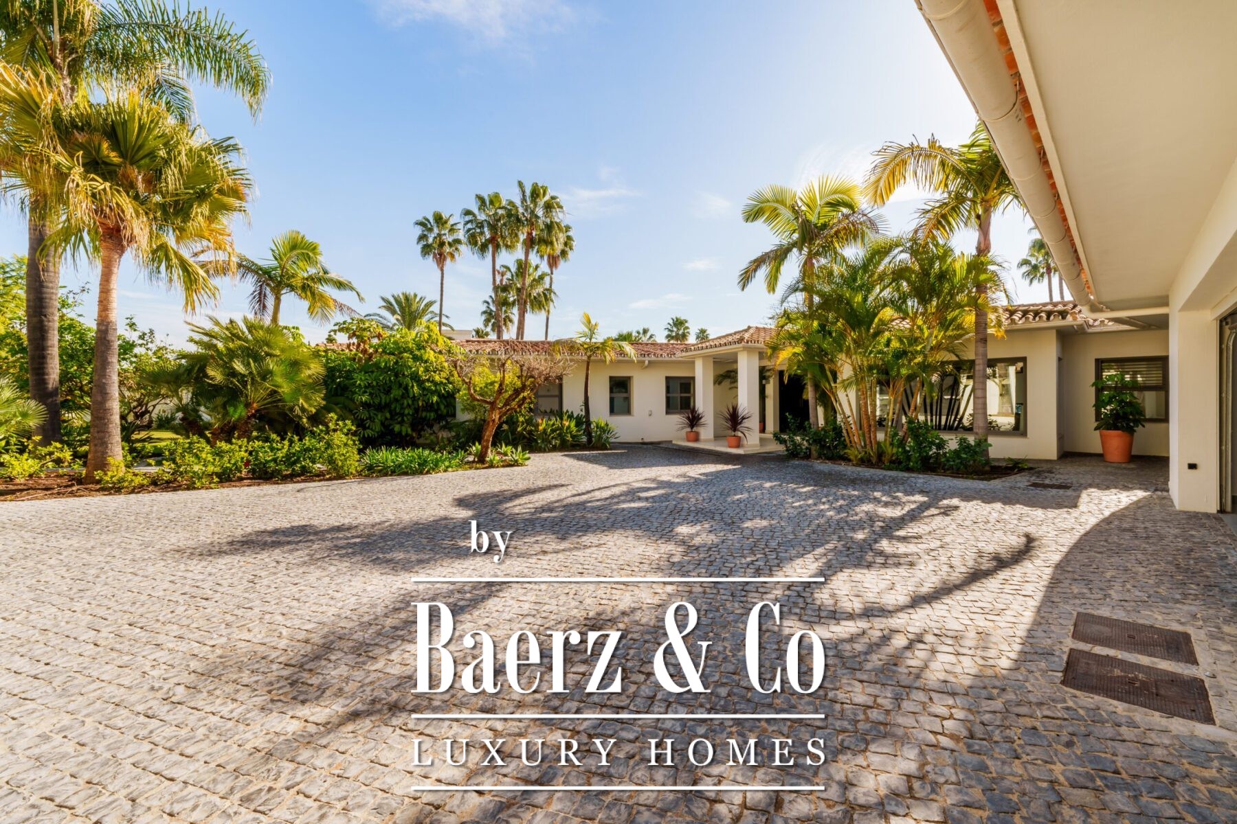 Species of note include majestic ficus trees, Washingtonia robusta palms, Strelitzia nicolai (Giant Bird of Paradise), deep violet jacarandas in bloom, as well as towering specimens of Agave americana and Cycas revoluta. In addition, the property features tropical hibiscus, Kentias and dracaena, which reinforce its exotic and sophisticated character.