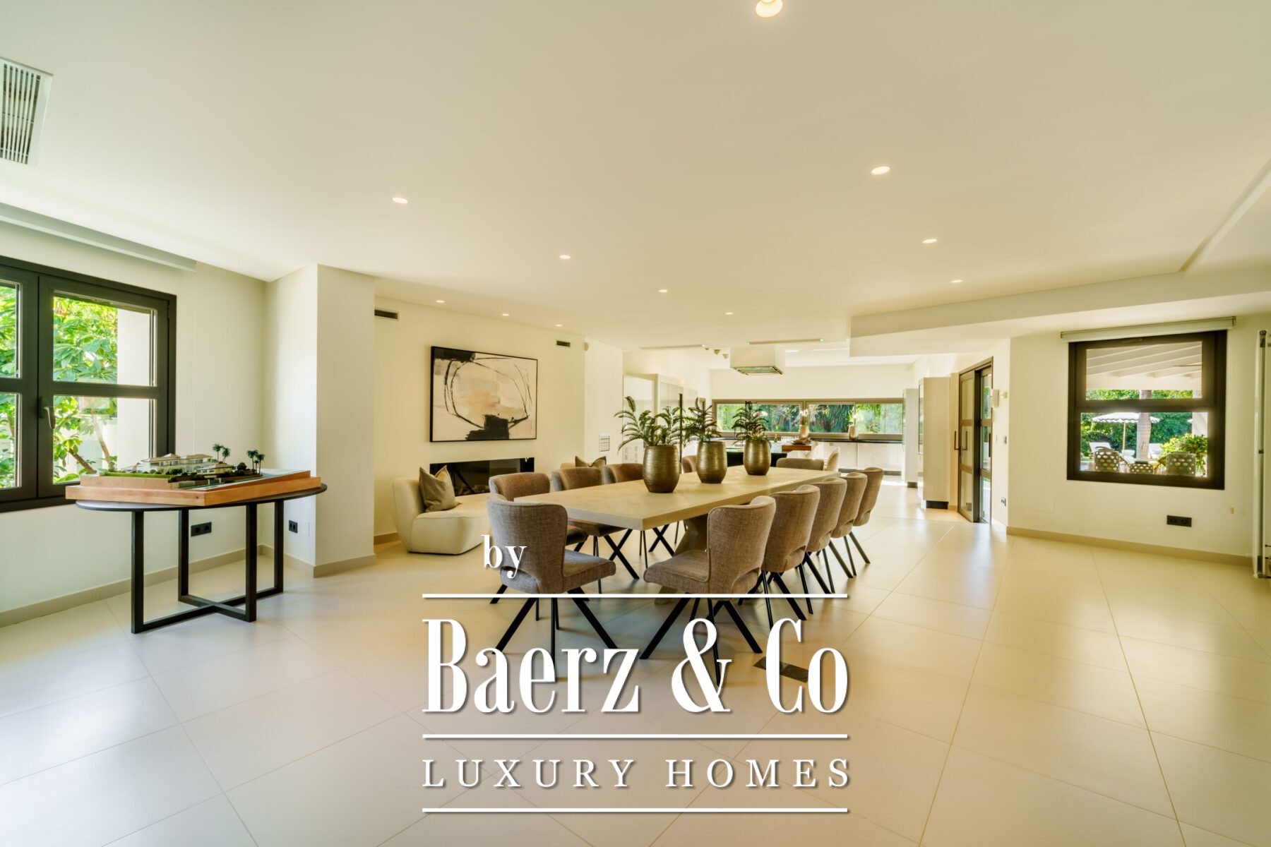 The property spans 603m² on a generous 3,062m² flat plot, seamlessly blending with its surroundings. Its single-level bungalow layout ensures effortless flow, with all bedrooms offering direct access to the beautifully landscaped mature garden.
