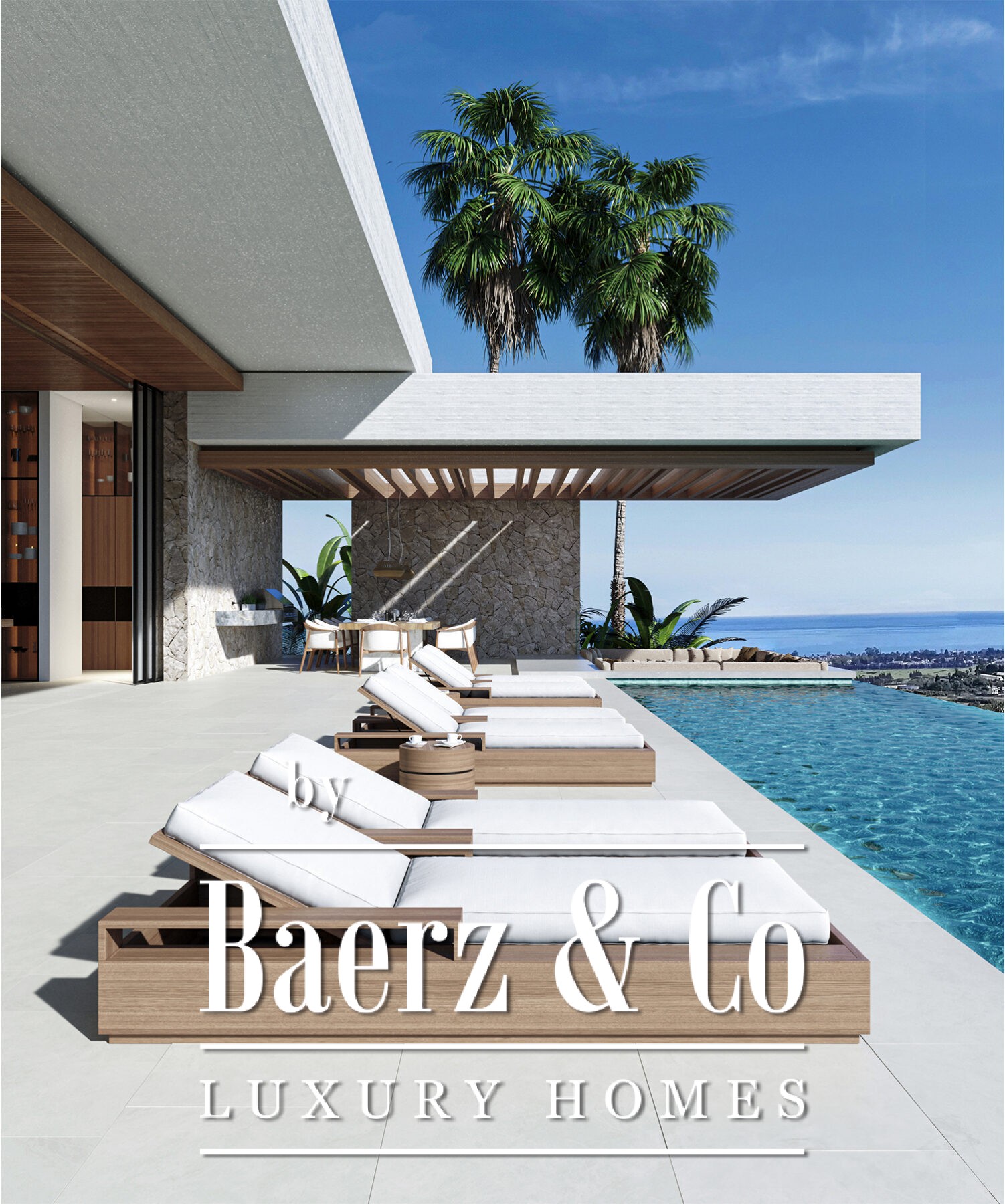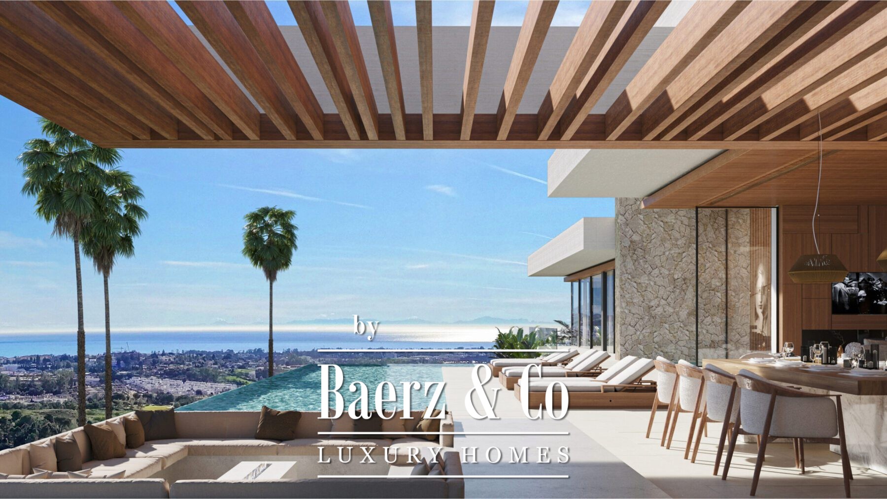 The heart of the home will be its outdoor spaces. An infinity pool will sit at the center of the design, perfectly positioned to make the most of the incredible views. Adjacent to the pool, you'll find a sunken seating area—ideal for gathering with family or friends—alongside an open-air kitchen, perfect for outdoor dining in the warm Mediterranean climate. Water features throughout the outdoor spaces will add a special touch, making every corner feel connected to nature.