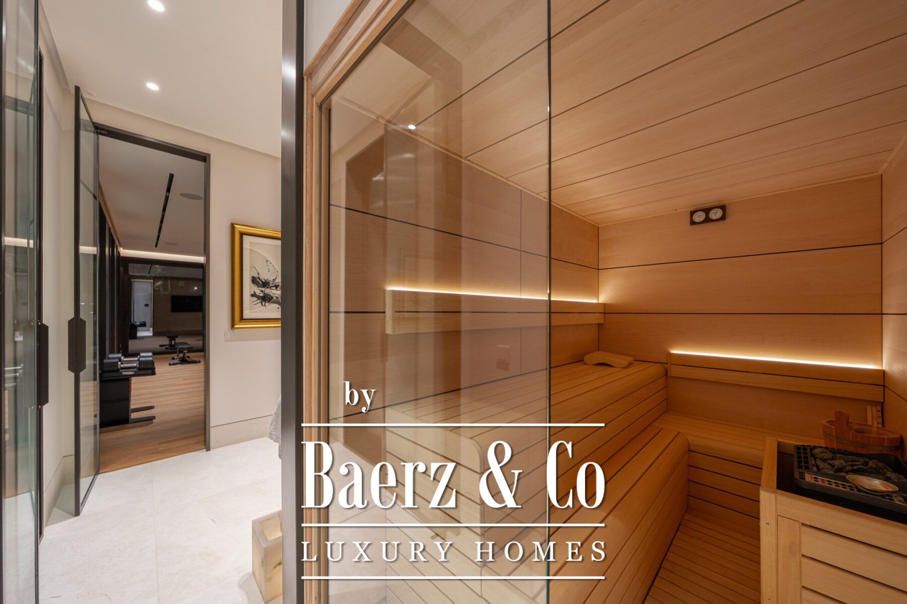 On the lower level, leisure and wellness come together with a dedicated guest suite, a private spa with an indoor heated pool, sauna, and gym. The entertainment lounge and bespoke bar invite elegant gatherings, while the cinema room and custom machine room underscore the home’s sophisticated infrastructure and emphasis on operational discretion.