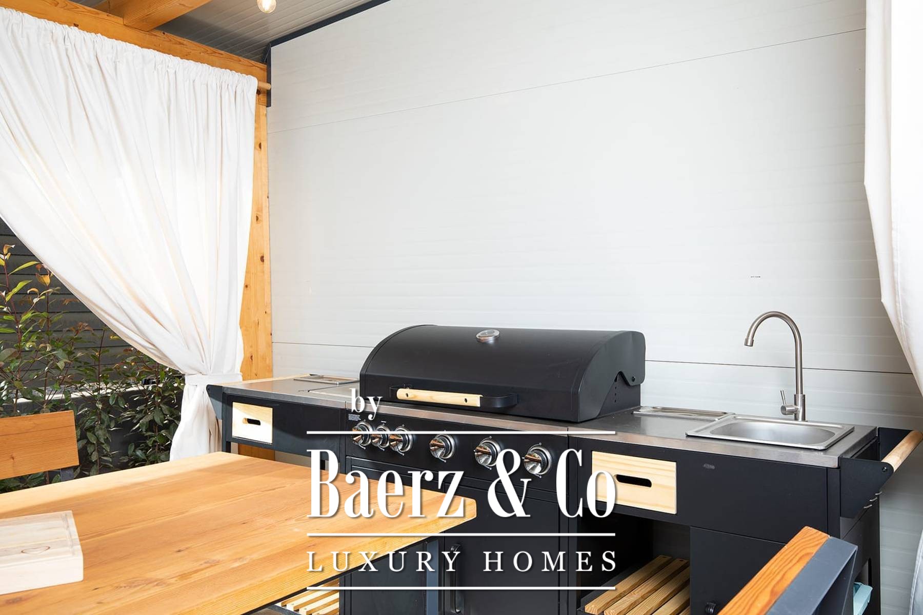 For sale is this luxurious modern villa in Medulin, net area 300 m2, located on a plot of 600 m2 in a quiet area. It consists of a basement, ground floor and first floor with the following layout: in the basement there is a wellness area with a relaxation zone. On the ground floor there is an entrance, a spacious open space living room with kitchen and dining room, three bedrooms each with its own bathroom. From the living room there is access to the terrace (part covered, part uncovered) from which access to the pool 9 m x 3.5 m and the garden, summer kitchen and children's playground. On the first