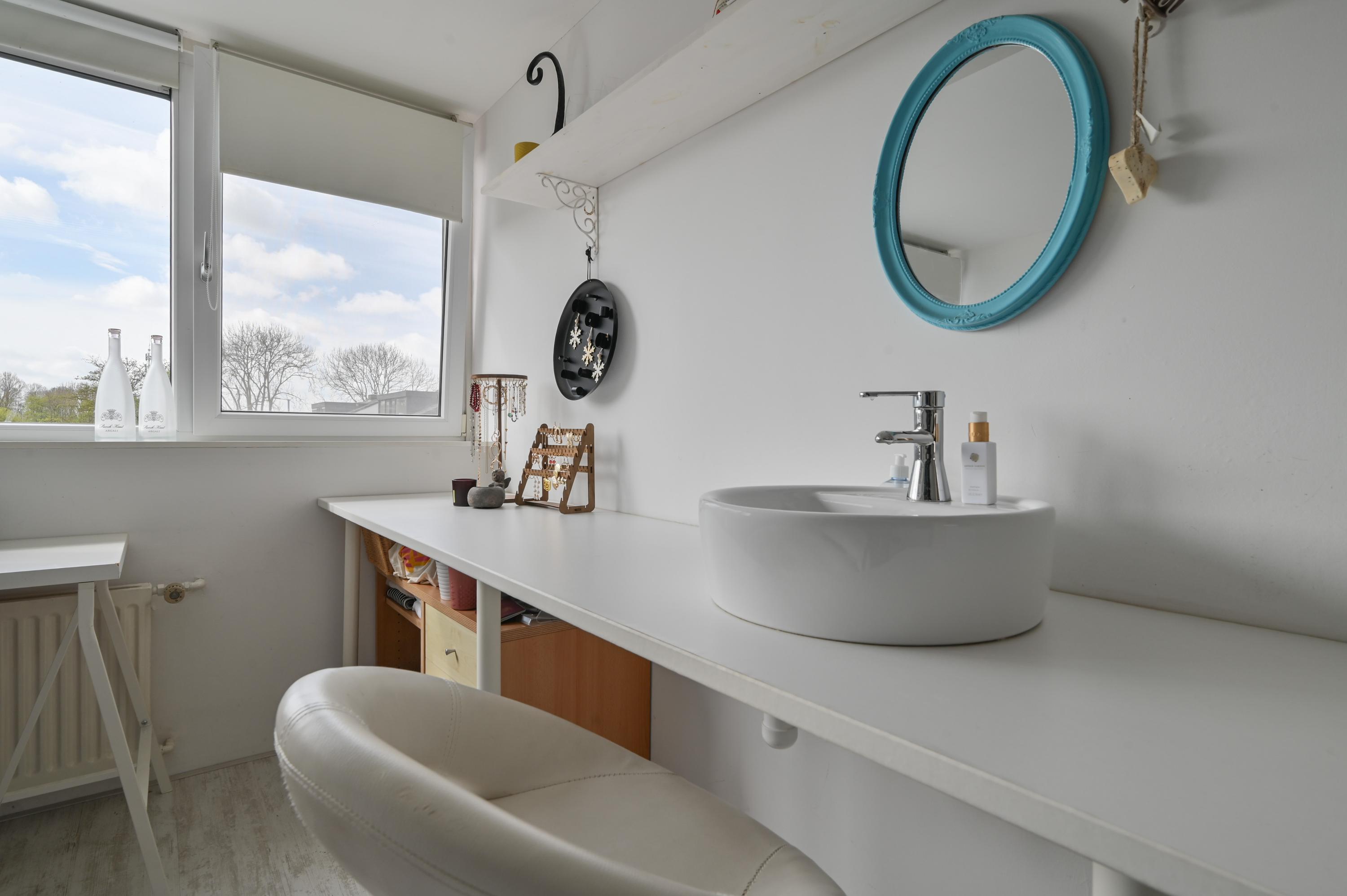 The second floor is surprisingly spacious and bright. The landing is generously sized and ideal for use as a workspace or home office. Thanks to the windows in the stairwell, there is an abundance of natural light, creating an open and pleasant atmosphere.