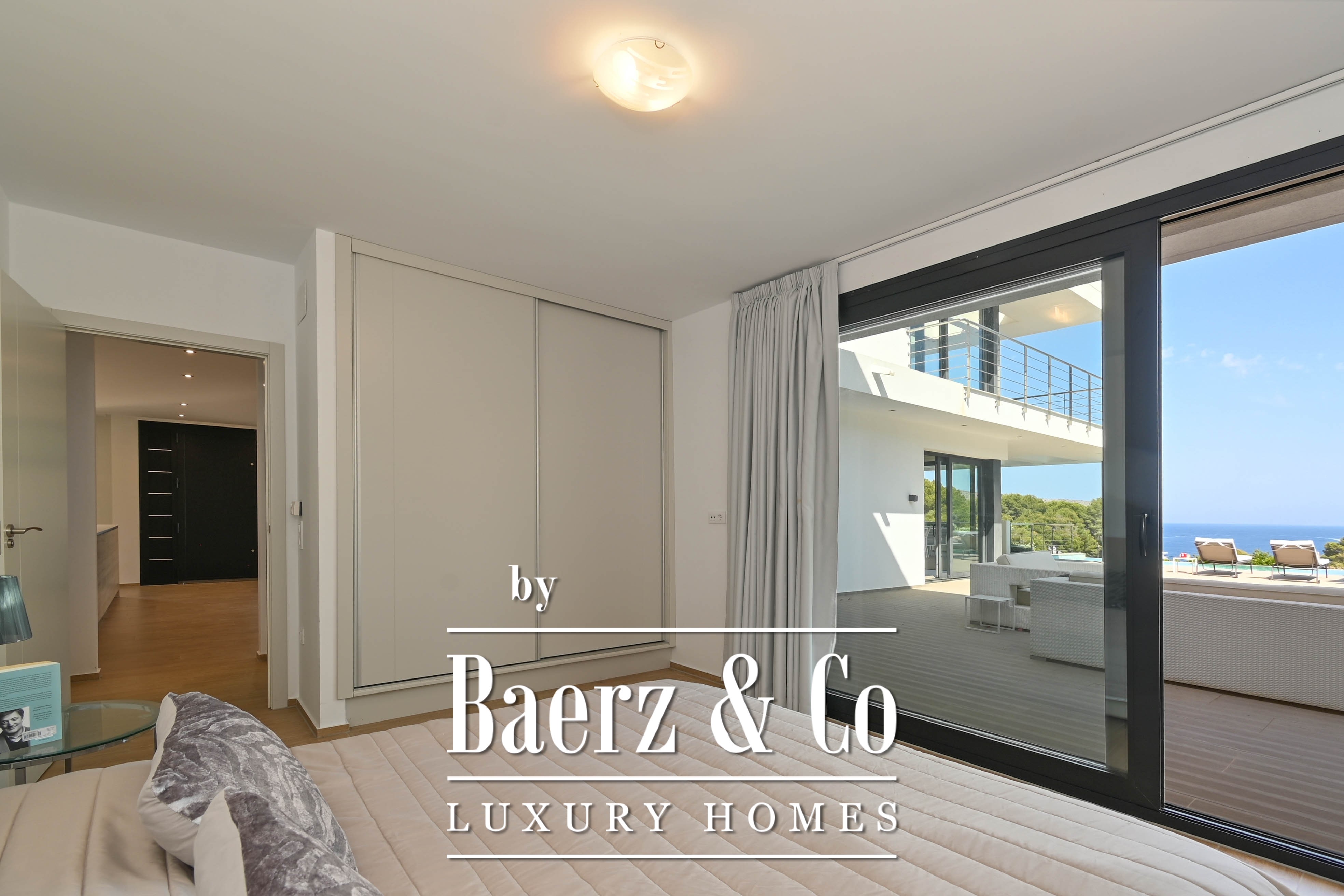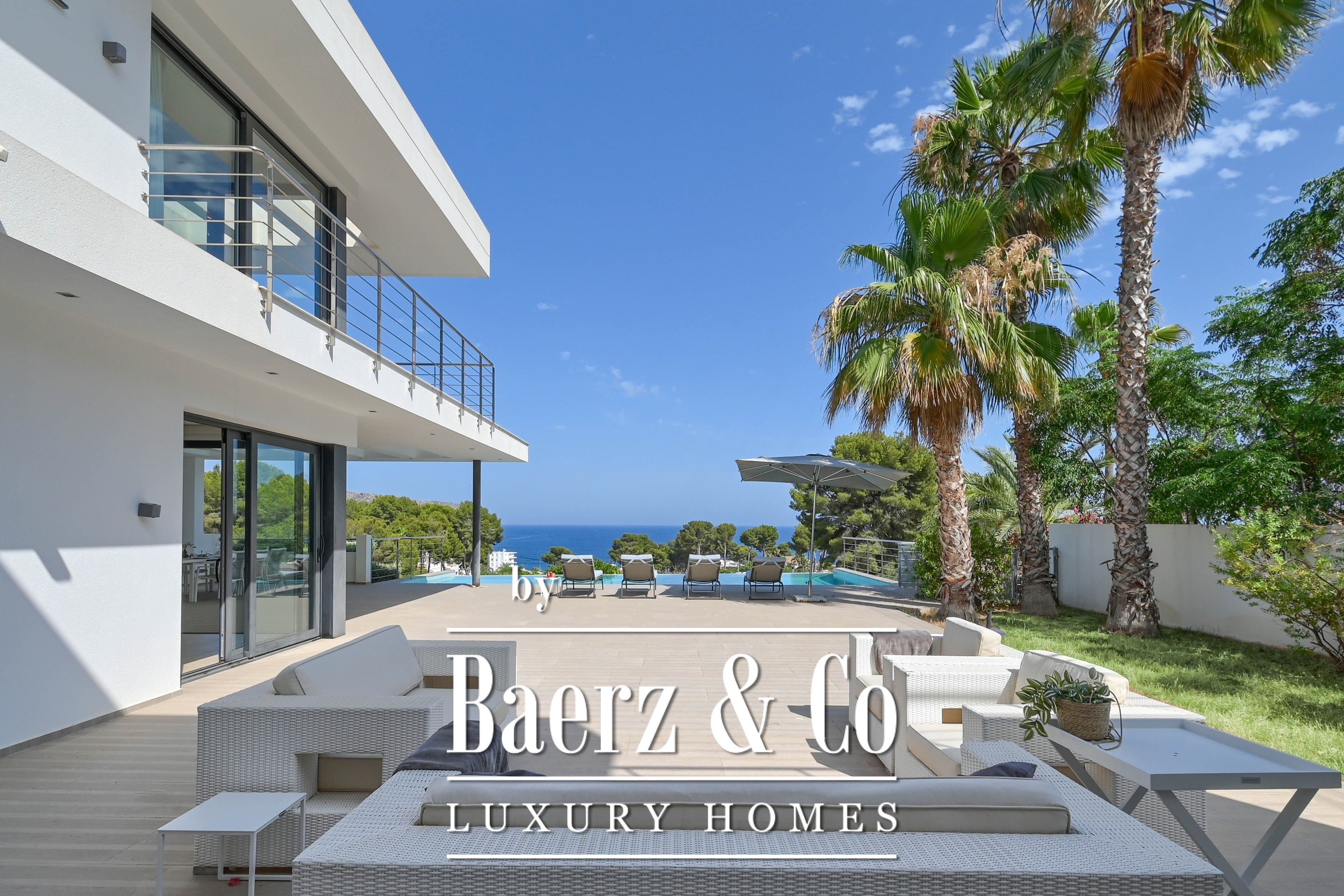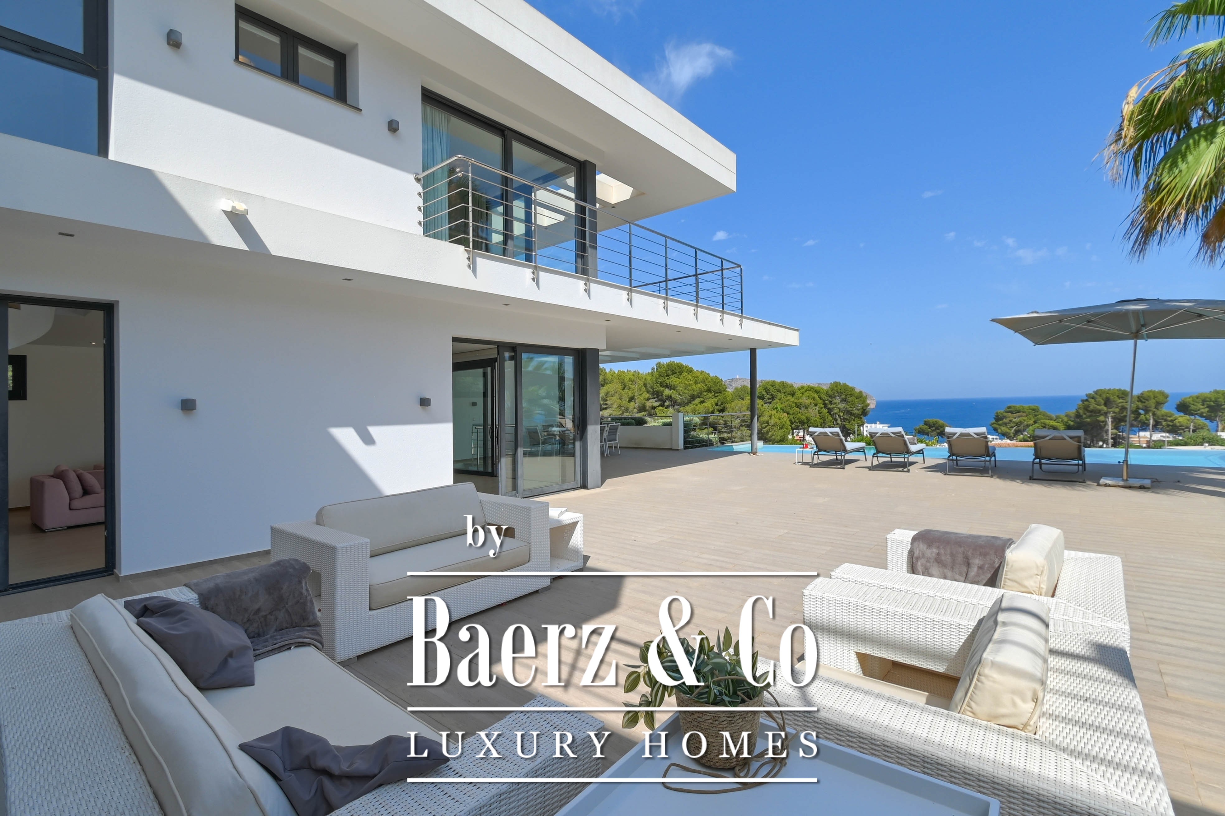 Outdoors, you can enjoy a large terrace, an inviting swimming pool, and of course, the spectacular views of the Mediterranean Sea. The double garage provides extra comfort and storage space.
