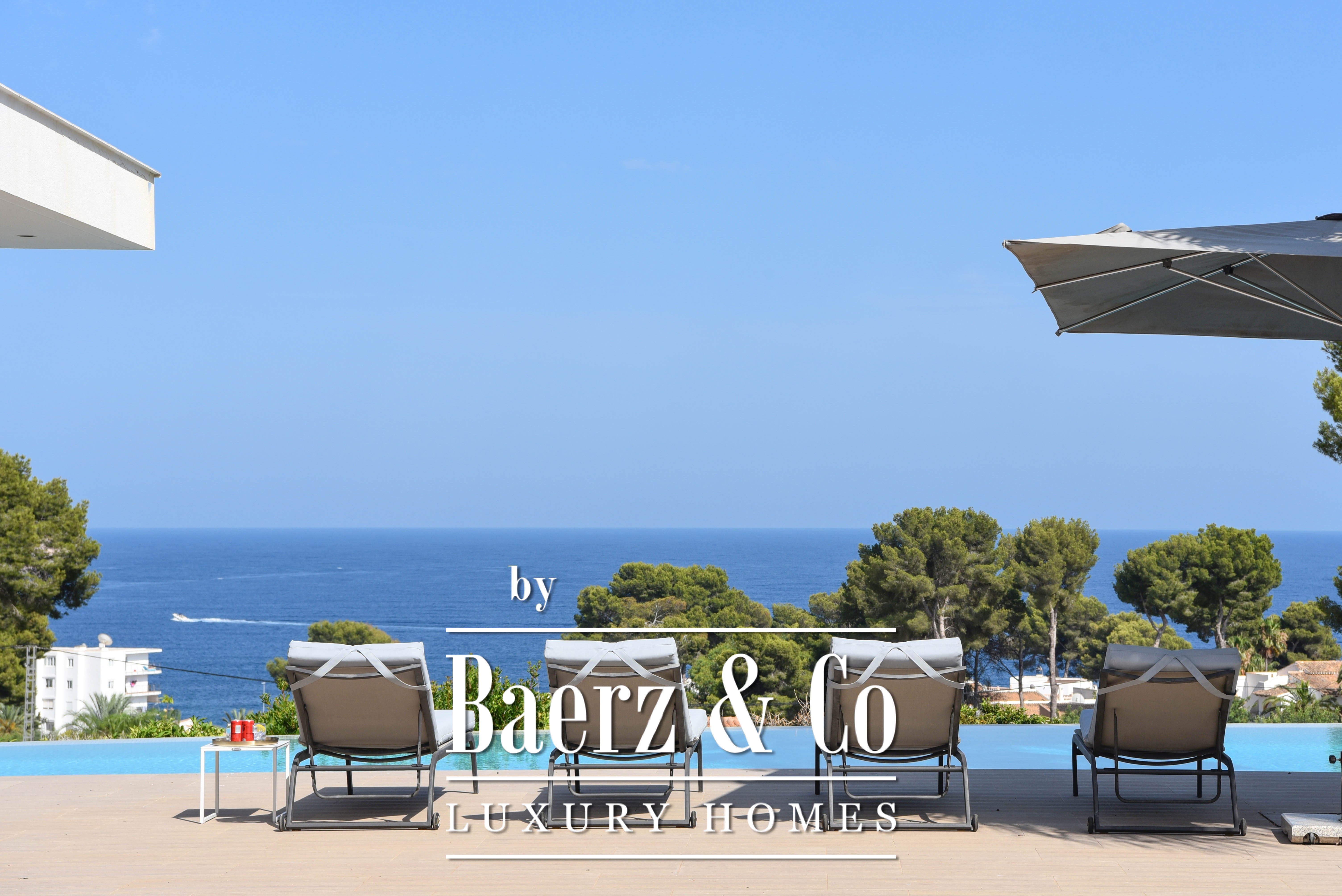 Just a short walk from the beach and the charming restaurants of Moraira, discover this modern villa with breathtaking sea views