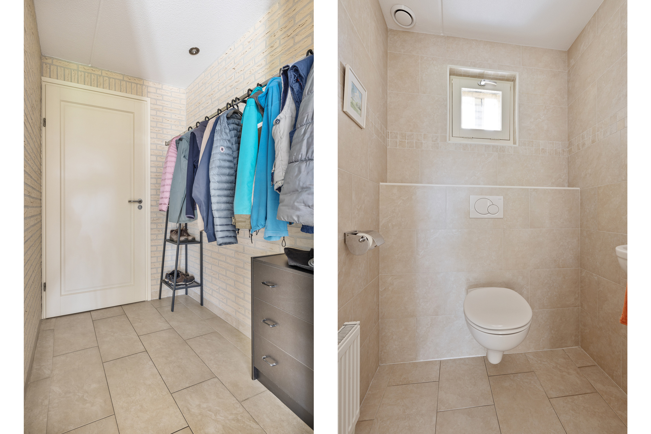 The villa is entirely single-story, barrier-free and with extra-wide doorways. In the genial east, we naturally like to enter from the back, but for form entrance at the front of the house, in the spacious and sunny hall. On the floor is a beautiful, light ceramic tile that works excellently with underfloor heating. The baseboards are integrated with the walls throughout the house, so dusty edges have no chance here. The architect's mission was to create an open, light and sunny home, and he succeeded excellently.