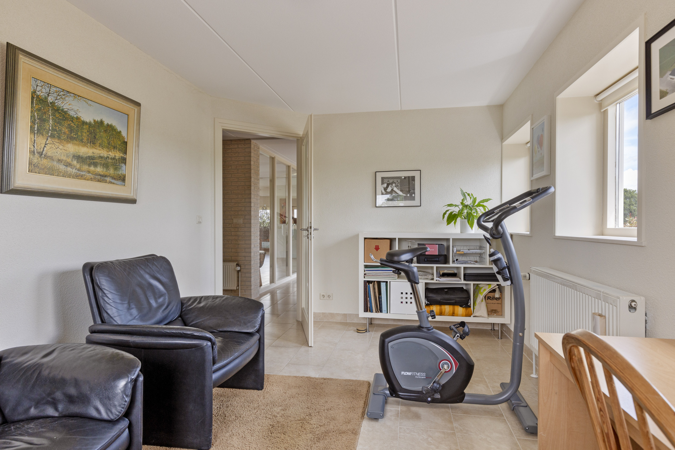 Left is the front bedroom, now used as a study and gym.