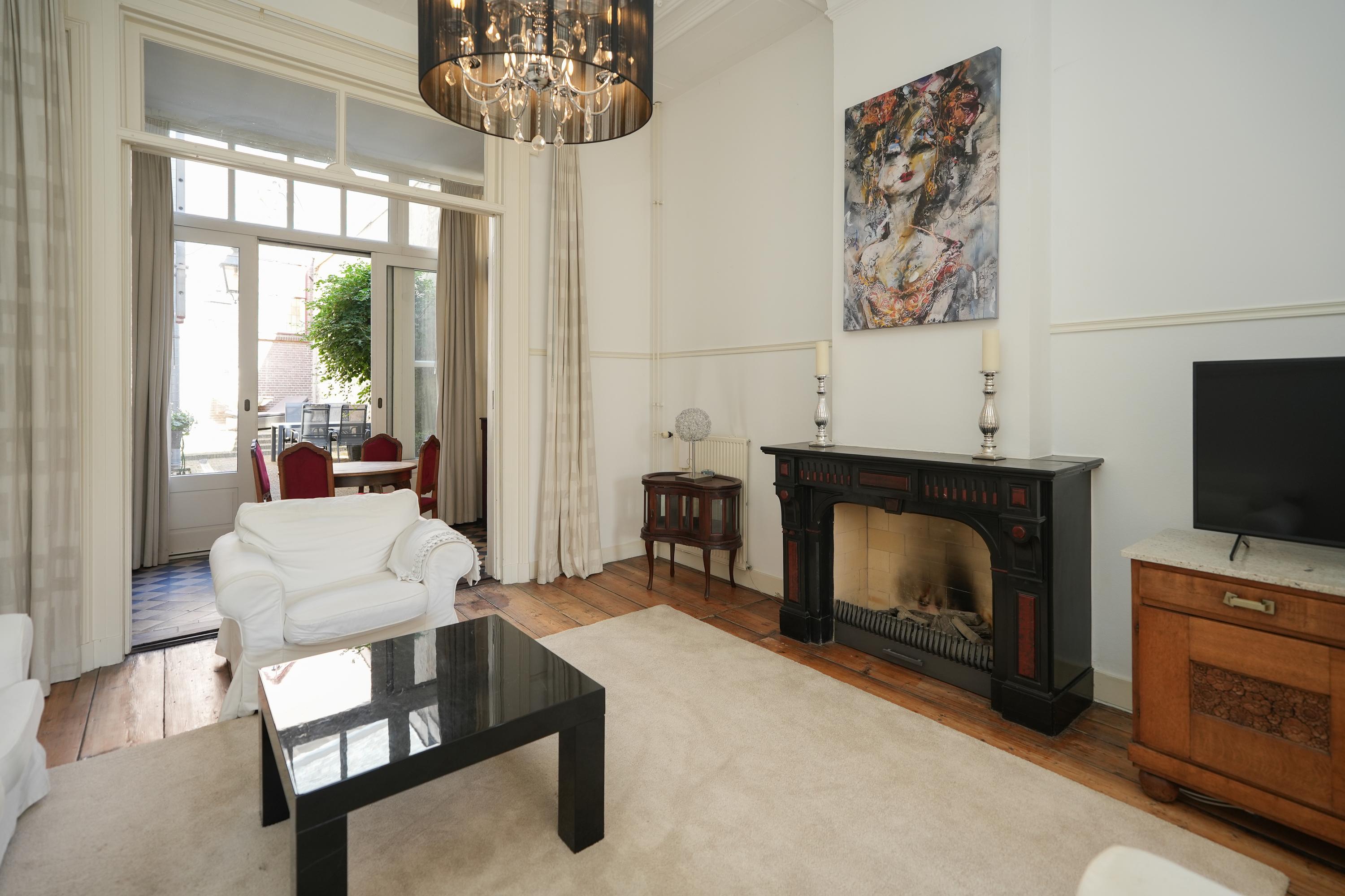 Statige hal/entree met meterkast en prachtig authentiek trappenhuis met marmeren vloeren, woonkamer en suite en eetkamer met schuifpui. In de kamer aan de voorzijde zijn de originele vensterbanken nog aanwezig, hier kan je lekker van de ochtendzon genieten. Via een tussenhal zijn het toilet, keuken en slaapkamer met badkamer bereikbaar. De sfeervolle binnentuin is toegankelijk zowel vanuit de eetkamer als de slaapkamer. De ruime keuken heeft een U-opstelling met inbouwapparatuur en een barretje.