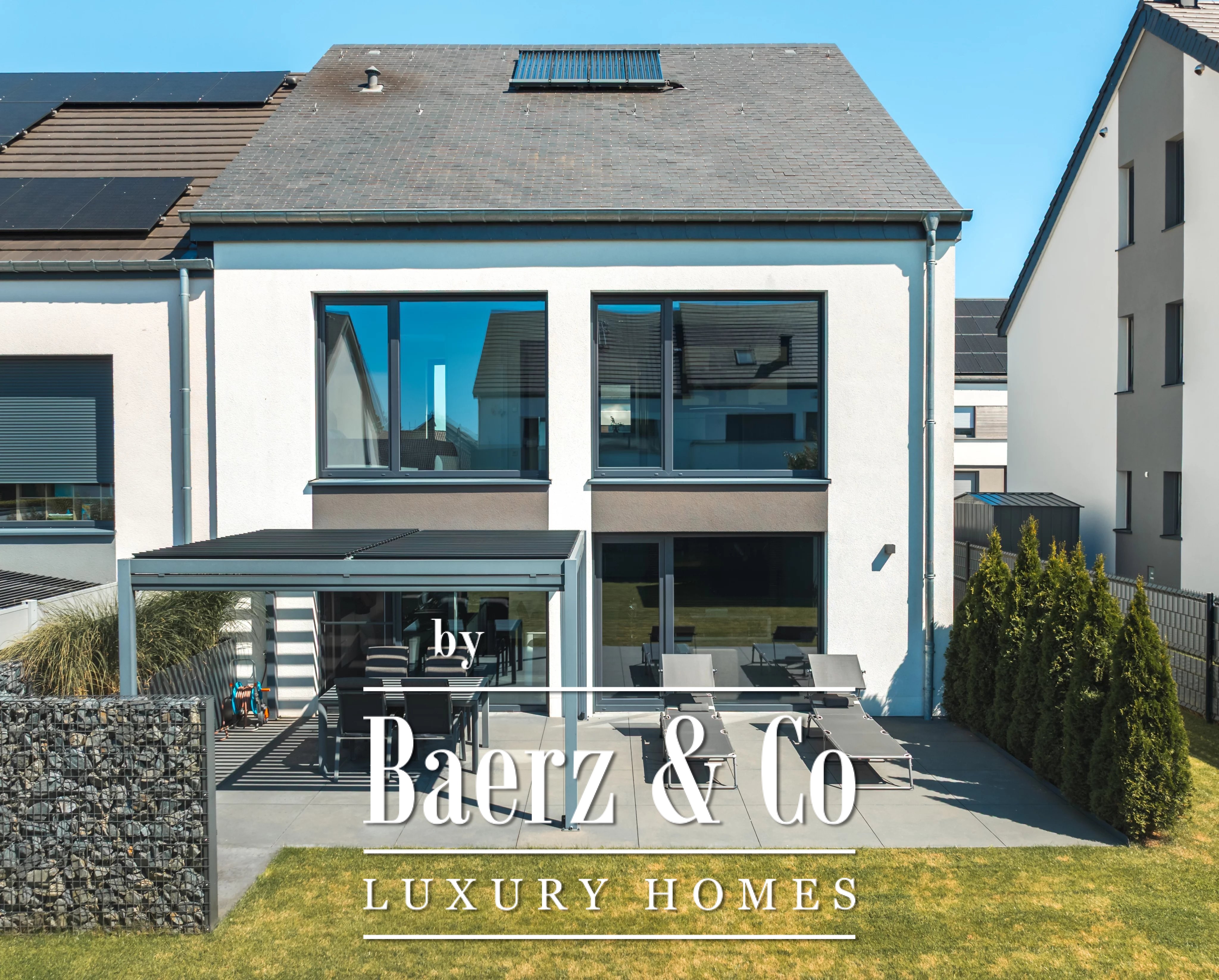 Built in 2015 by Cardoso Construction, the house is defined by meticulous maintenance and up-to-date technical aspects. Triple-glazed, break-in-resistant aluminum windows, connected electric shutters, fiber optic internet, and home automation underline the commitment to comfort and security. Underfloor heating powered by a Buderus oil-fired boiler, double-flow ventilation, and solar panels ensure year-round efficiency.