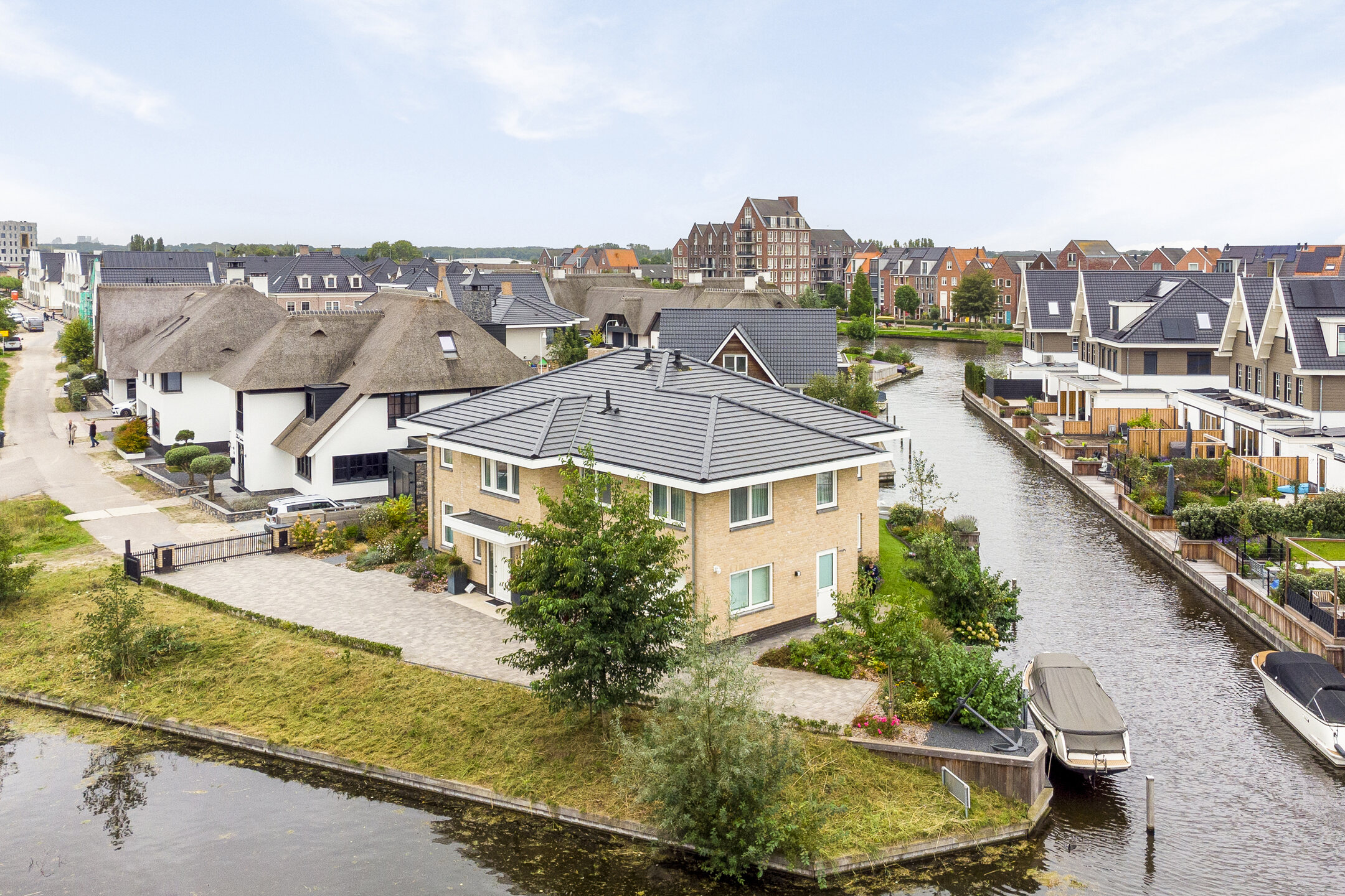Detached villa Oegstgeest presents a sheltered world where contemporary design meets the tranquility of waterside living. This modern home, completed in 2019, anchors itself on a 762 m² plot bordered by water on three sides, offering unobstructed views and mooring for several boats, one fitted with a boat lift. The 311 m² residence is a study in sustainability, with A energy class, triple glazing, full insulation, and solar panels that balance comfort with responsibility.