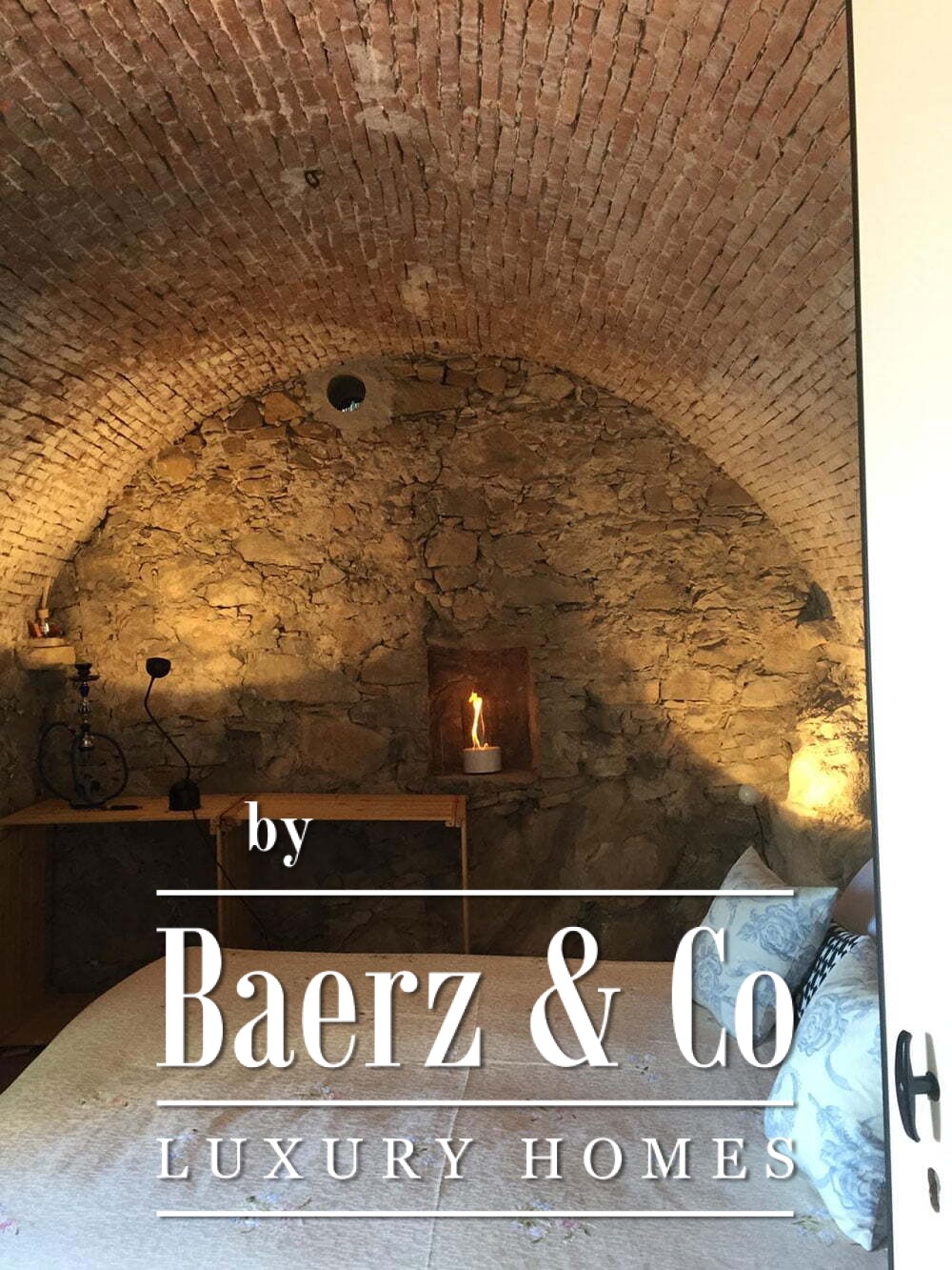 The villa stretches across three levels, each thoughtfully divided with a private entrance. The ground floor begins with a living area, kitchen, two bedrooms, and the atmospheric original structure featuring curvaceous ceilings. The first floor hosts a luminous central section—a large living room with kitchen opening to a sea-view courtyard, three bedrooms, and three bathrooms—while the adjacent third section comprises an additional living area, kitchen, and bathroom. With seven bedrooms and six bathrooms overall, the villa Ospedaletti adapts easily to flexible ownership or hospitality use.