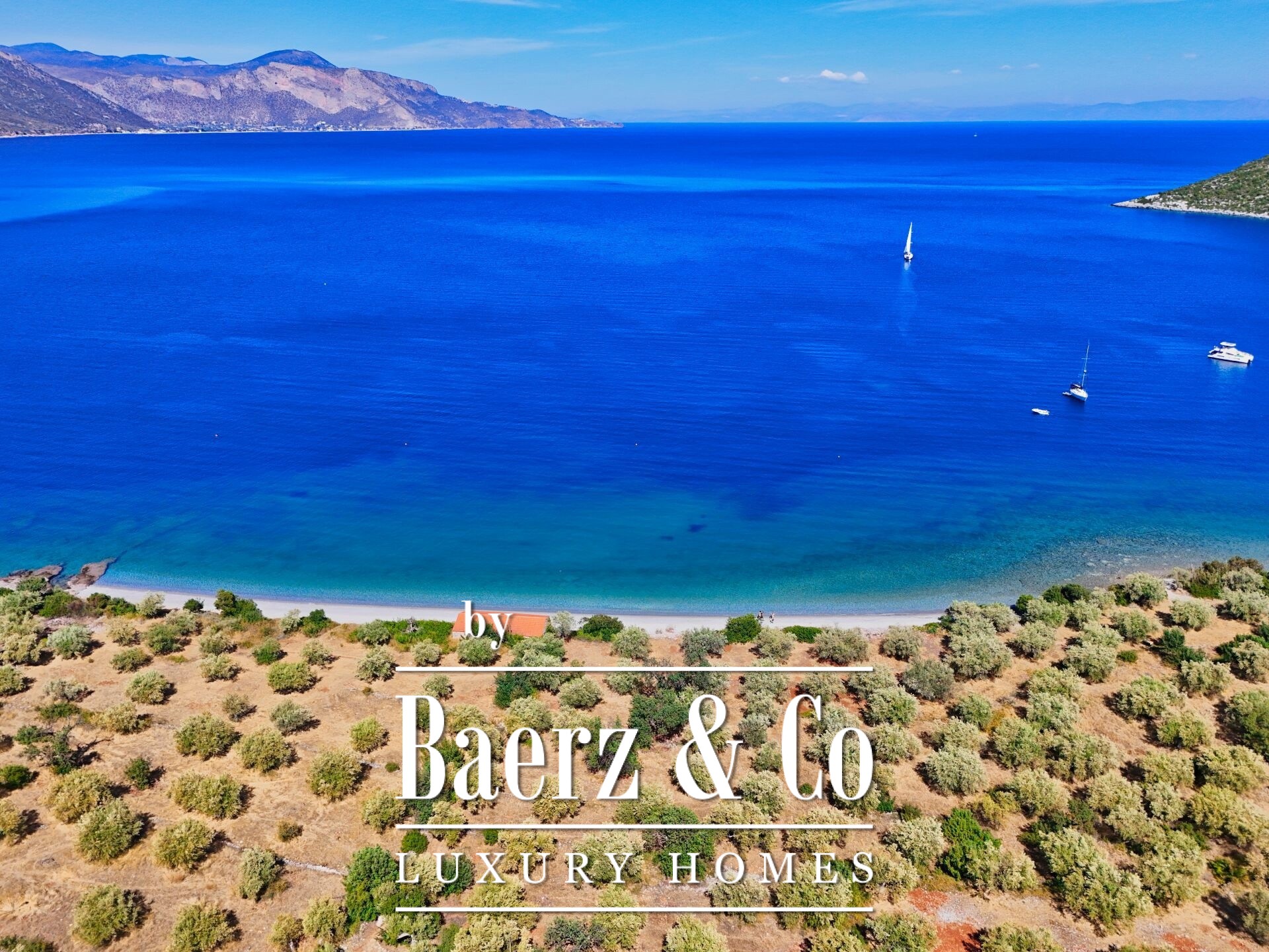 In a location of unique beauty, within a lush olive grove and with unobstructed, magnificent views of the sea and the mountain, a detached house of 235 sq m is available for sale, within a privately owned plot of 4,200 sq m. The house harmoniously combines traditional stone elements with modern lines, while the large internal height further highlights its special, traditional character. It is developed on two levels. On the ground floor, a 70 sq m guest house is provided with a living room, kitchen, bedroom and bathroom, as well as a 20 sq m covered parking
