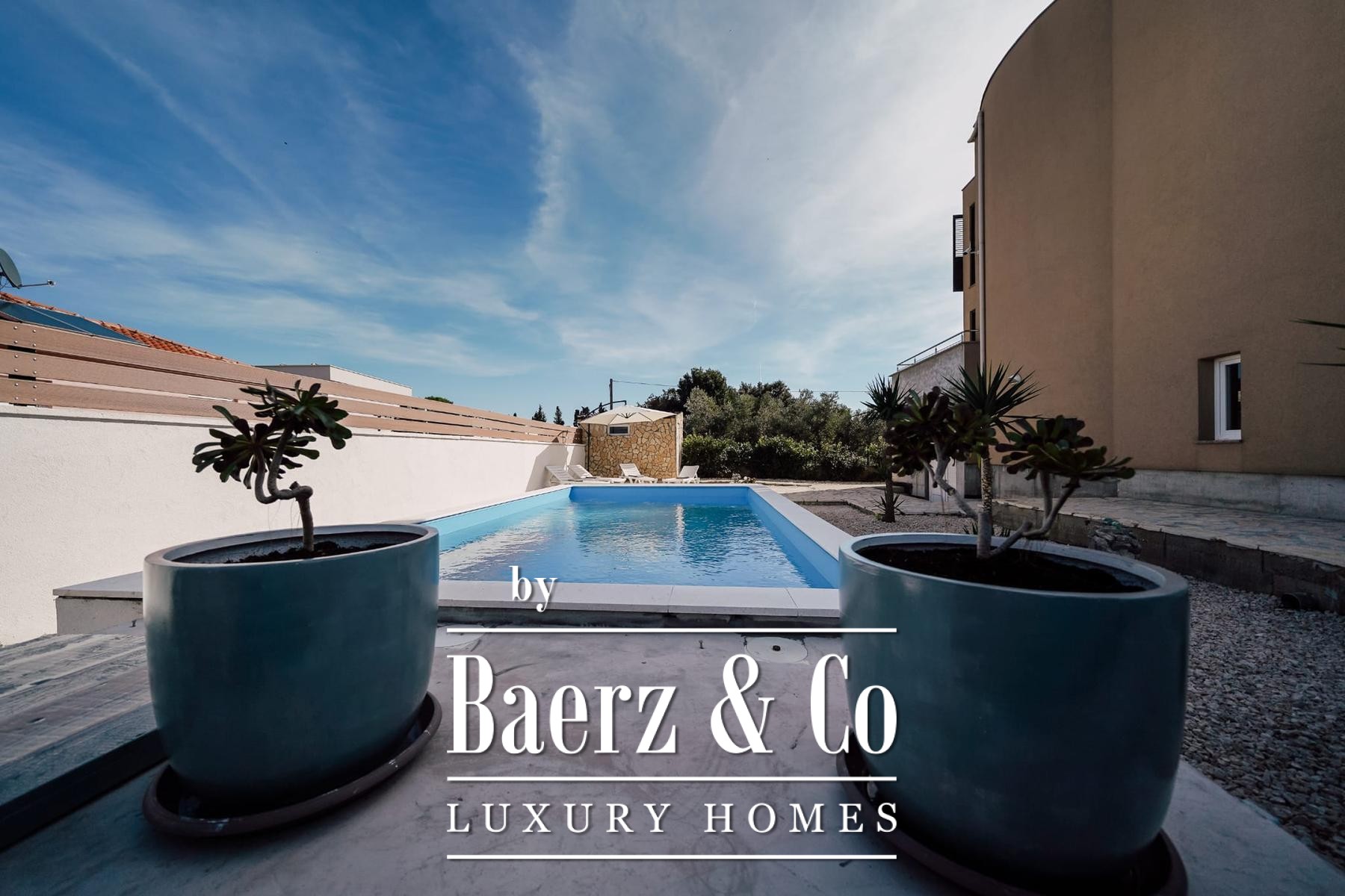 are four bedrooms and a bathroom.In the courtyard decorated in Mediterranean style there is a swimming pool.From the terrace there is a view of the sea and the city of Zadar.The house is fully furnished and equipped.The heating and cooling system is arranged via air conditioning, with the possibility of wood heating.There is preparation and a project for a solar power plant.Proper ownership.More information on request.