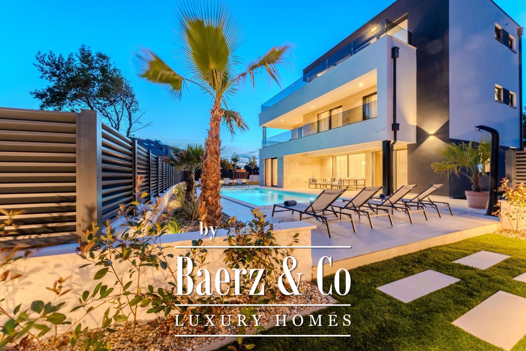 Villa Privlaka in Croatia presents a modern architectural statement in a quiet, exclusive enclave just moments from the Adriatic Sea. This villa offers 412.80 m² total floor area including terraces, set on a 591 m² plot, integrating open-plan living with a sense of seamless indoor-outdoor flow. The main living area of 52.66 m² connects to a 28.95 m² covered terrace and leads directly to the private 36 m² swimming pool, creating a social core ideal for relaxed gatherings or tranquil retreat. Four bedrooms all feature private en-suite bathrooms, with thoughtful allocation across the first and ground floors for both privacy and comfort. The top level is dedicated to a versatile wellness area of 23.60 m² with two expansive terraces designed for quiet contemplation beneath the Mediterranean sky.
