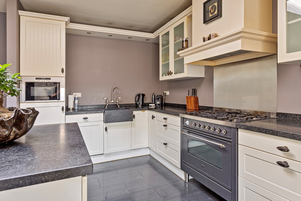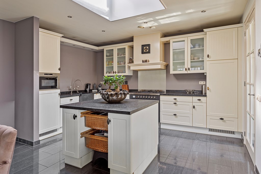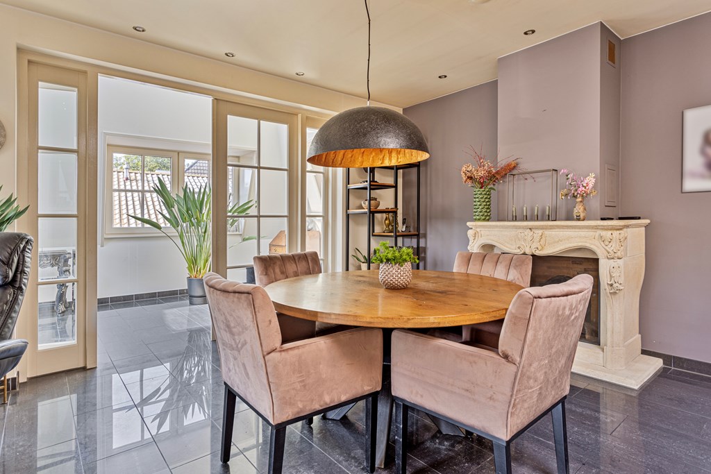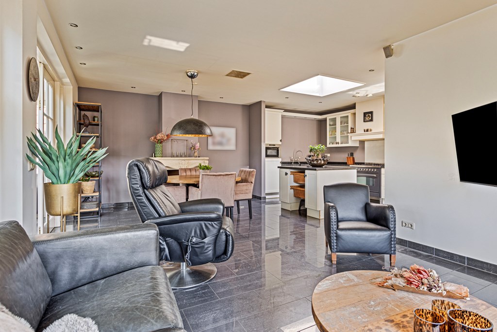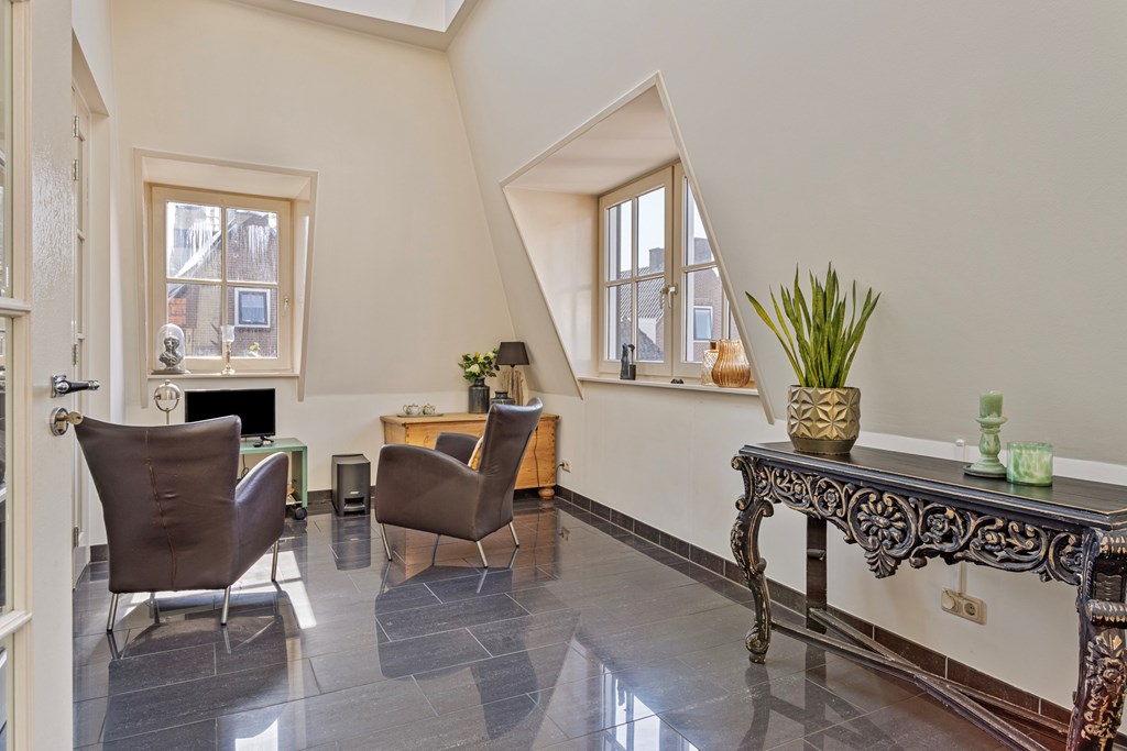The penthouse’s south-west facing city garden is a private retreat, with a tiled terrace, outdoor fireplace, and artificial lawn for versatile enjoyment. Solar panels, fiber optic connectivity, and advanced insulation complement the property’s energy class B, ensuring efficient modern living. This luxury penthouse for sale in Rhenen merges the sophistication and scale of a city home with the serene pace and discretion valued by international buyers.